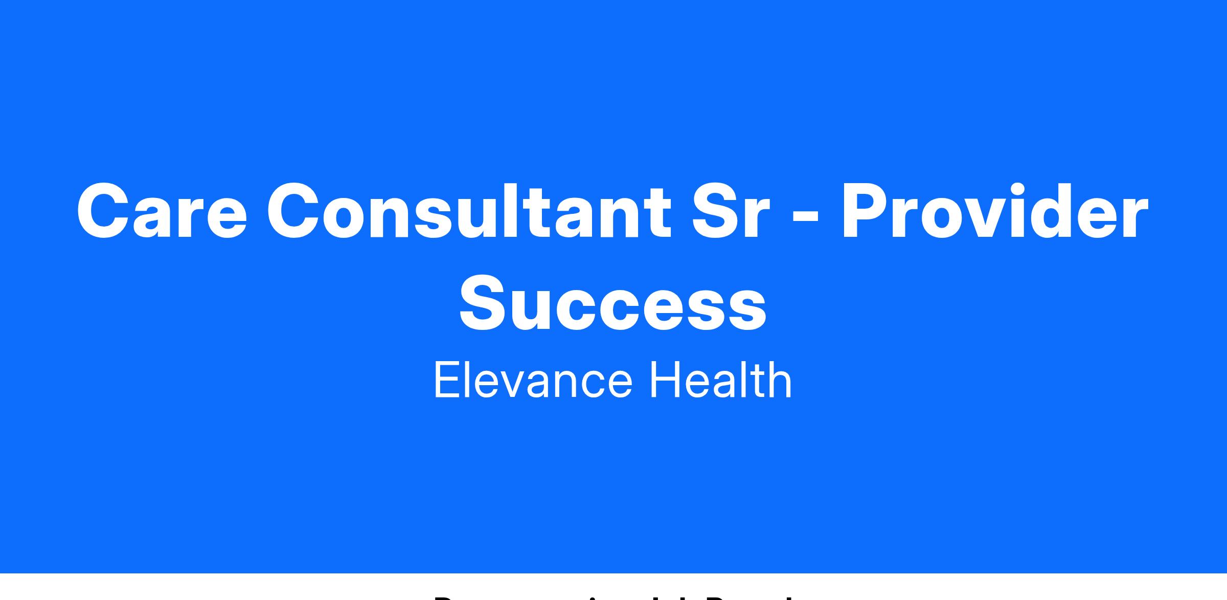 The Care Consultant Sr. for Provider Success is responsible for consulting with providers (Commercial, Medicare Advantage and Medicaid Lines of Business) to assess and deploy appropriate interventions to drive success in value-based care. Primary duties include, but are not limited to: