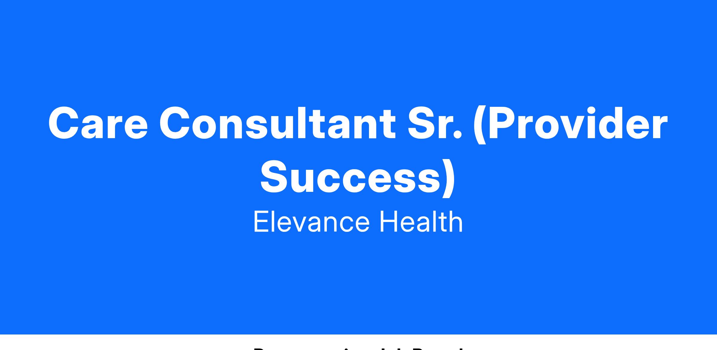 The Care Consultant Sr. for Provider Success is responsible for consulting with providers (Commercial, Medicare Advantage and Medicaid Lines of Business) to assess and deploy appropriate interventions to drive success in value-based care. Primary duties include, but are not limited to: