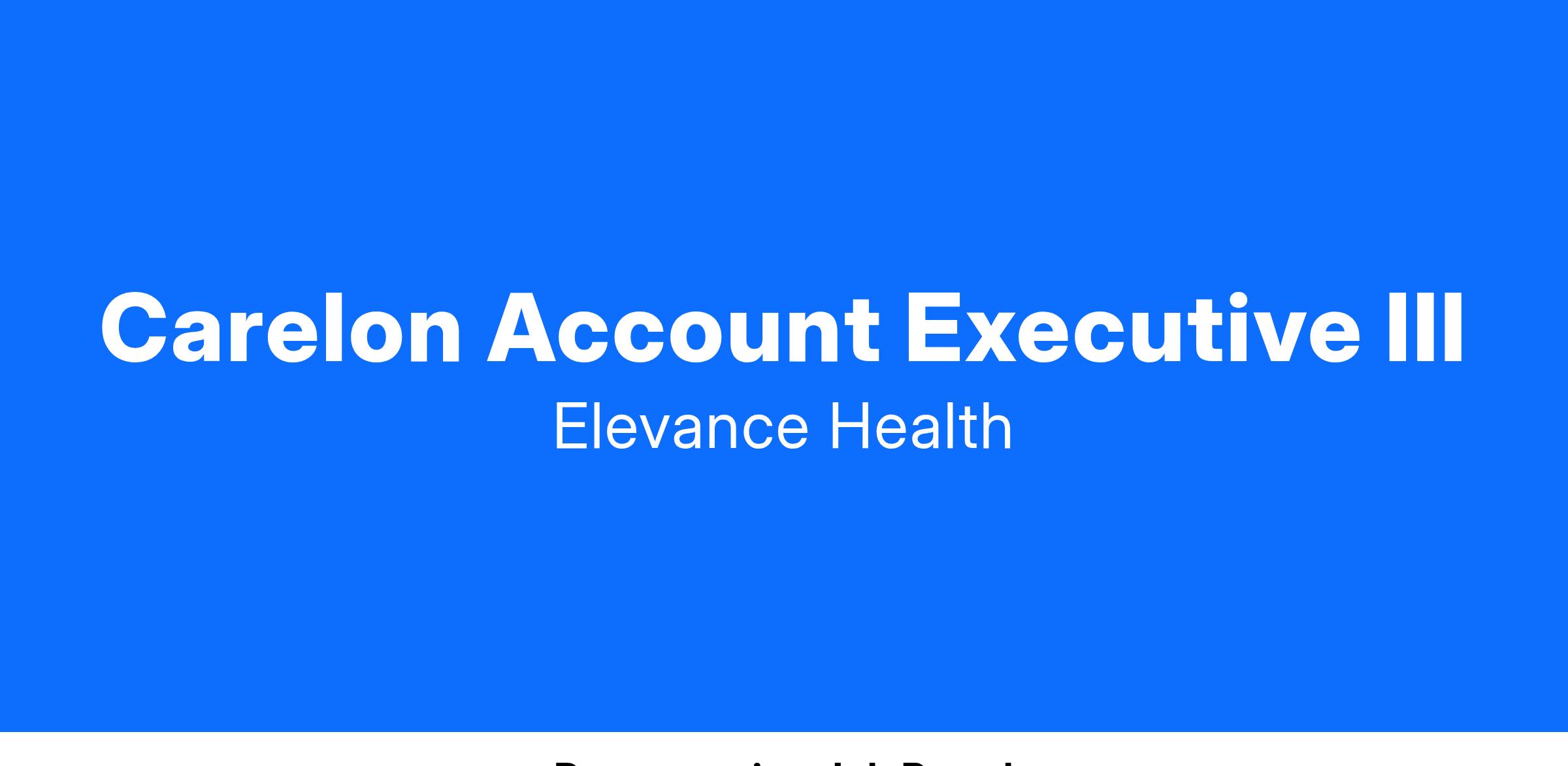 SLS > Sales - GeneralPlease be advised that Elevance Health only accepts resumes for compensation from agencies that have a signed agreement with Elevance Health. Any unsolicited resumes, including those submitted to hiring managers, are deemed to be the property of Elevance Health.