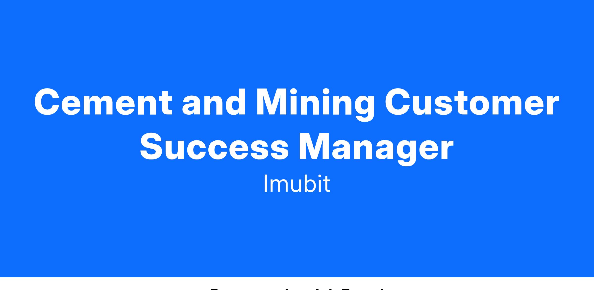 Imubit is looking for a top-notch Cement and Mining Site Customer Success Manager to help disrupt manufacturing industries with breakthrough machine learning technologies.