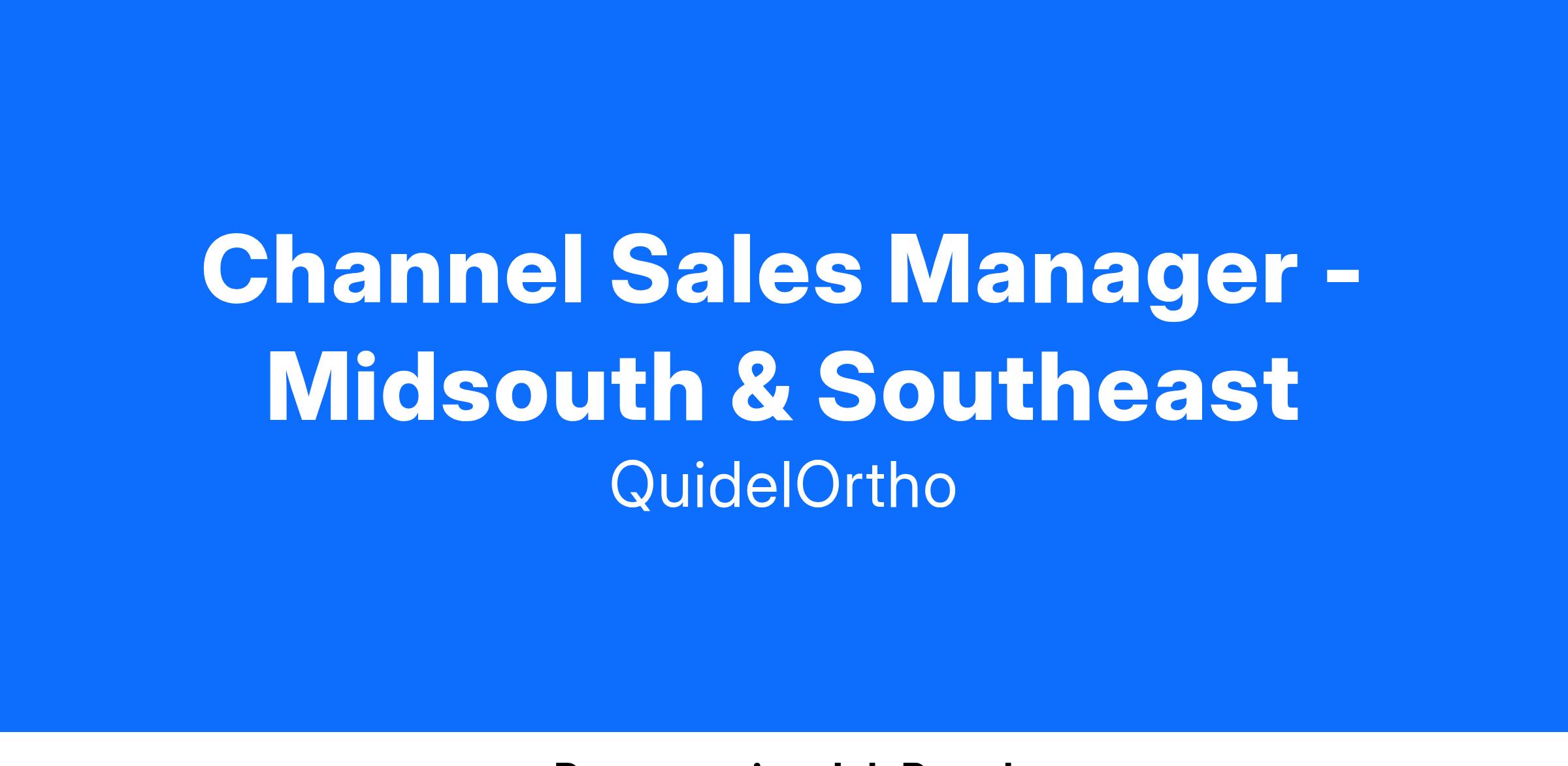 As we continue to grow as QuidelOrtho, we are seeking a Channel Sales Manager for the Midsouth & Southeast Territories. The Channel Sales Manager drives revenue and profitability within a sales region by leading and leveraging all distribution relationships at executive and field levels. This role leads and supports the distribution strategy for QuidelOrtho in the field with both our sales team and our distribution partners sales teams. Specifically, focused on developing and supporting new business opportunities & leads for hospital and physician office labs by partnering with distribution sales management, reps & teams. Leading & directing product launches, marketing strategies and sales programs with key distribution partners in all markets. Proactively facilitates relationship building between the region and its distribution partners, leading routine business reviews and initiating targeting and lead generation programs and initiatives. Trains distribution staff and field teams on all QuidelOrtho products and programs to increase sales revenue. Represents QuidelOrtho at distribution sales meetings and events to enhance a competitive edge in the highly competitive world of healthcare diagnostics. Supports the Regional Sales Director in meeting and exceeding regional revenue and business goals. The Channel Sales Manager will have leadership responsibility focused on various distributor strategies, programs, projects, and initiatives that are deemed important and prioritized by executive management that can impact the overall business.