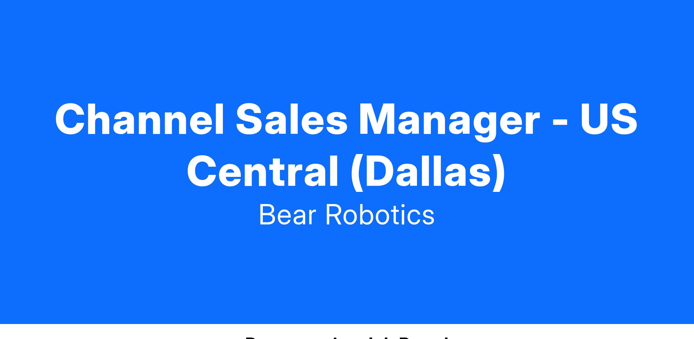 Job Title: Channel Sales Manager - US Central