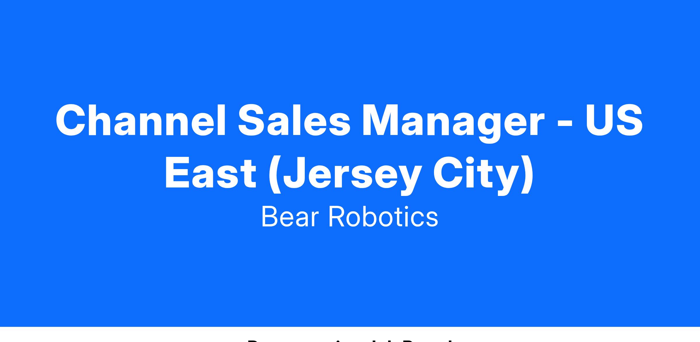 Job Title: Channel Sales Manager - US East