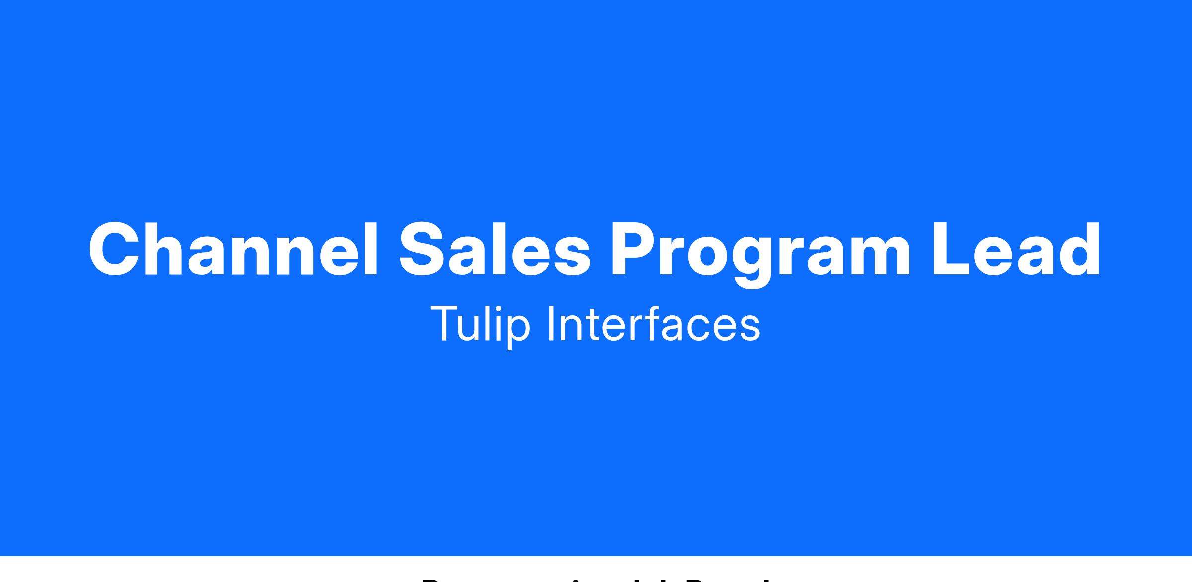 - Build and lead all of Tulip’s channel activities, including but not limited to deal registration, certification processes, onboarding and agreement management.