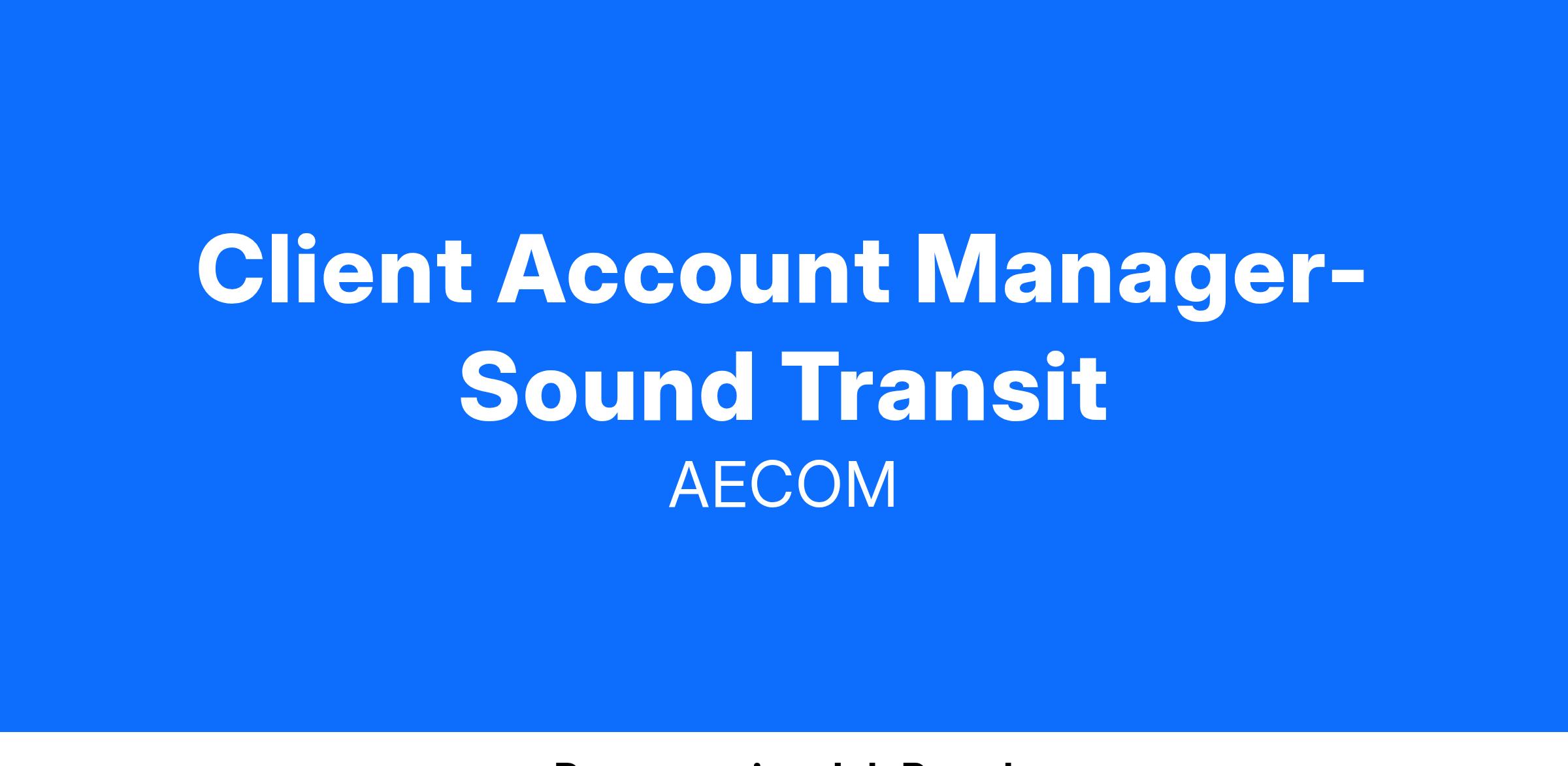 AECOM is seeking a dynamic and experienced Client Account Manager to drive business growth for Sound Transit in Seattle. This external facing leader will represent AECOM with Sound Transit and be responsible for business development, sales, and strategy across all divisions for this key client with a goal of winning new and repeat business for all of AECOM’s service offerings. This position is expected to begin immediately.
