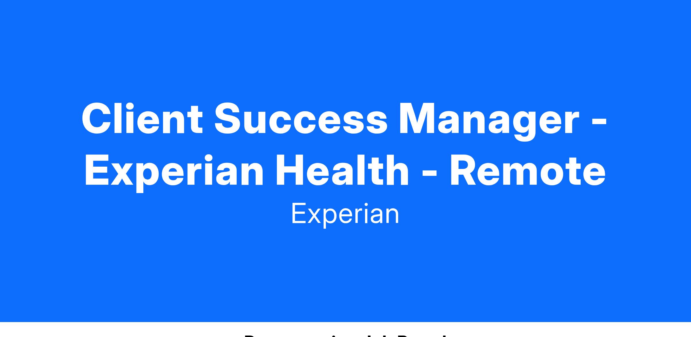 You will deeply understand our Experian Health product capabilities and providing consultative guidance and support to clients throughout their life cycle.