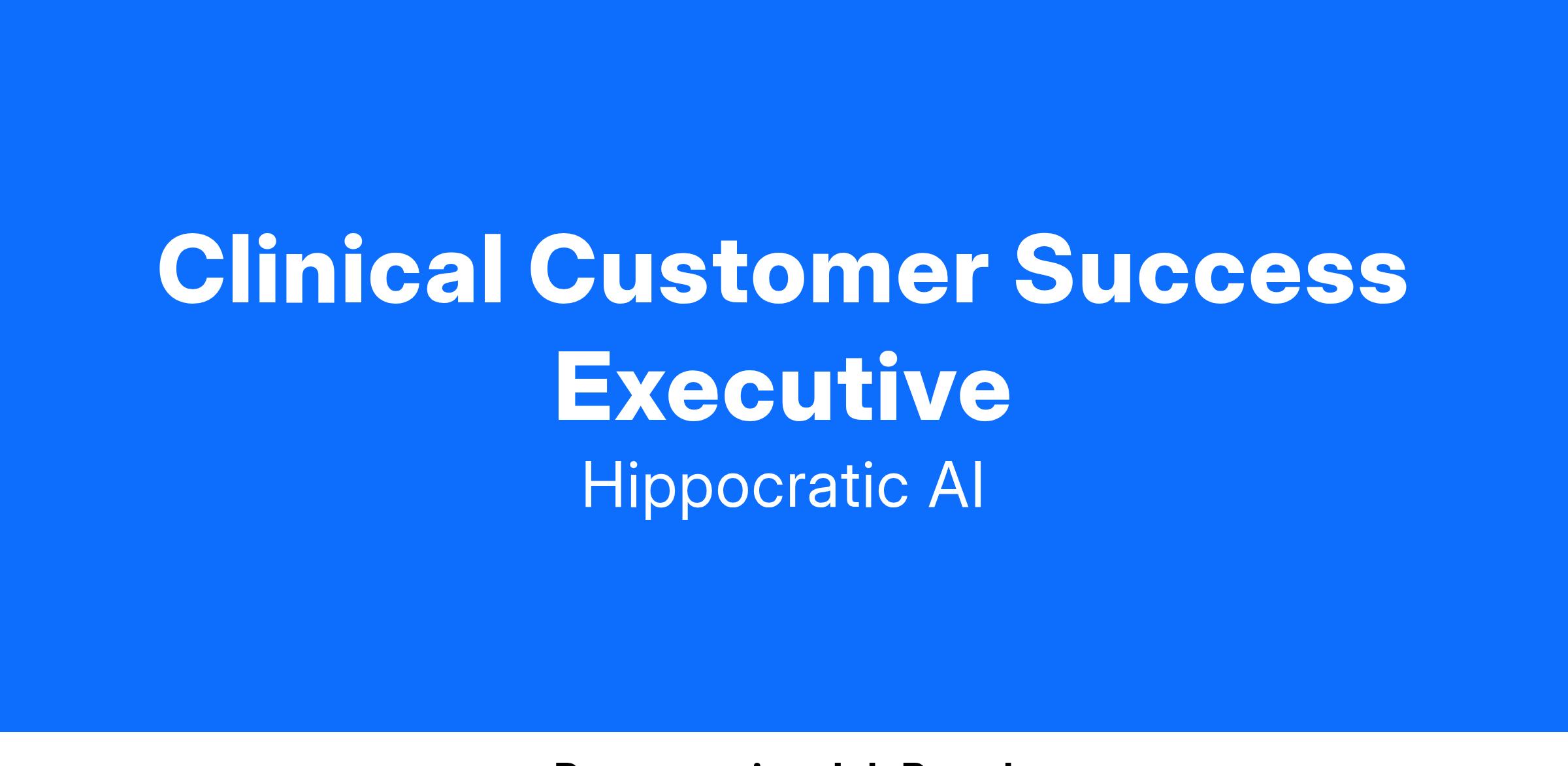 We are seeking a Clinical Customer Success Executive with clinical and corporate experience to join our team. This role combines your clinical experience with strategic customer success responsibilities, ensuring that our clients achieve measurable outcomes through Hippocratic AIβs innovative solutions. You will have the opportunity to partner and report to the Chief Medical Officer.