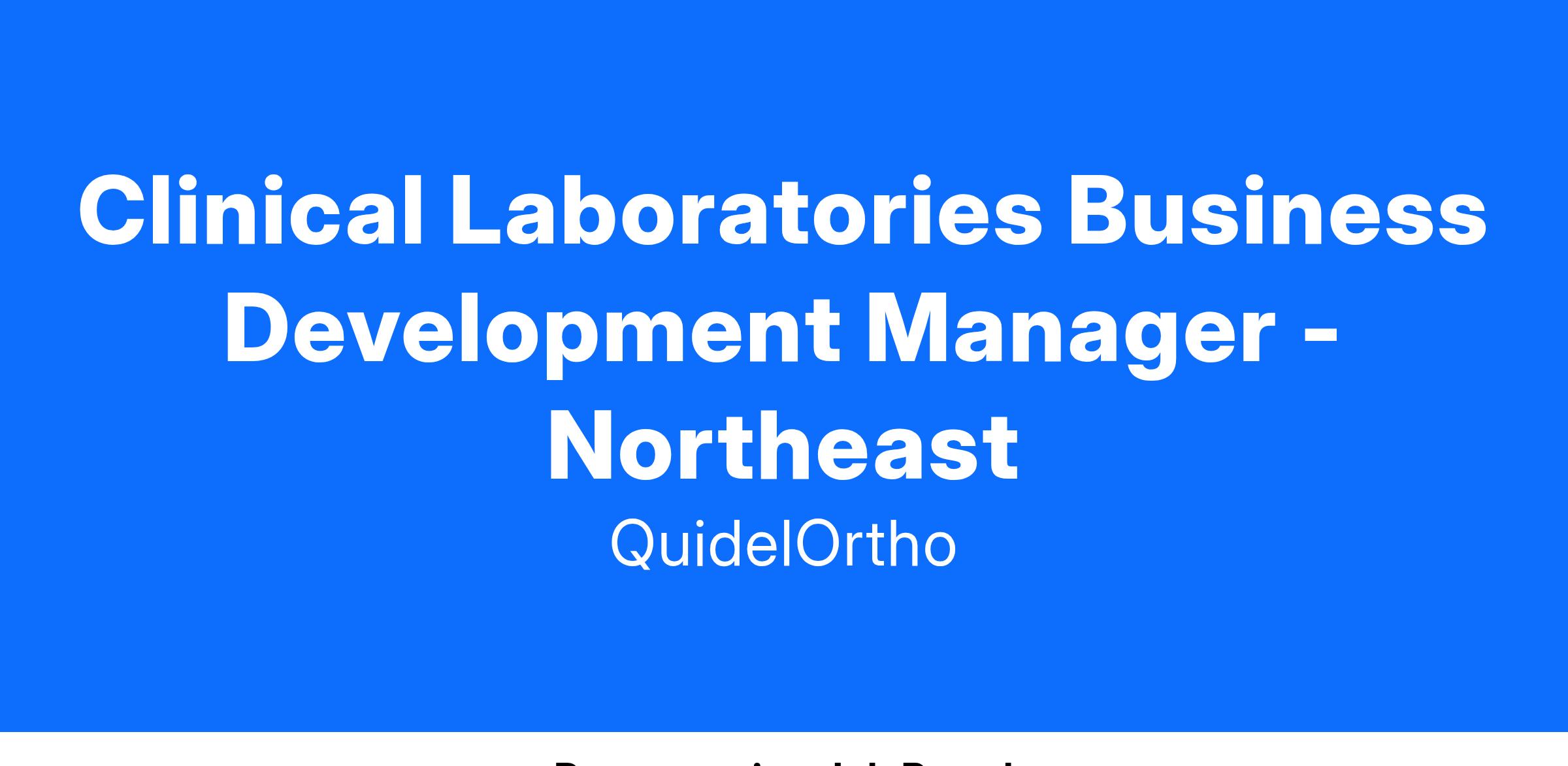 As we continue to grow, we are seeking a Clinical Laboratory Business Development Manager in the Northeast region. The Clinical Laboratory Business Development Manager is a front-line quota-carrying teammate responsible for the sale of Clinical Laboratory product lines to customers within a geographic territory. Responsible for new customer acquisition and implementation, and adoption of competitive Clinical Laboratory accounts. Additionally focus on retention of high value strategic current customers by teaming with Account Managers, Technical Specialists and Strategic Account Executives as applicable.