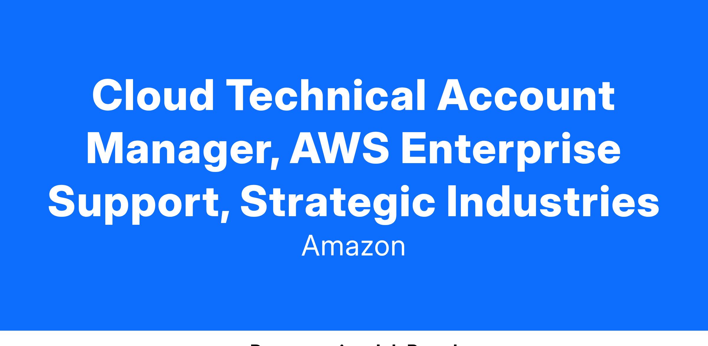 Would you like to join one of the fastest-growing organizations within Amazon Web Services (AWS) and help customers of all industries and sizes gain the best value and service from AWS? At AWS Enterprise Support we’re looking for a Technical Account Manager (TAM) to support our customers’ creative and transformative spirit of innovation across all technologies, including Compute, Storage, Database, Big Data, Application-level services, Networking, Serverless and more. This is not a sales role, but rather an opportunity to be the principal technical advisor and ‘voice of the customer’ to organizations ranging from start-ups to Fortune 500 enterprises.