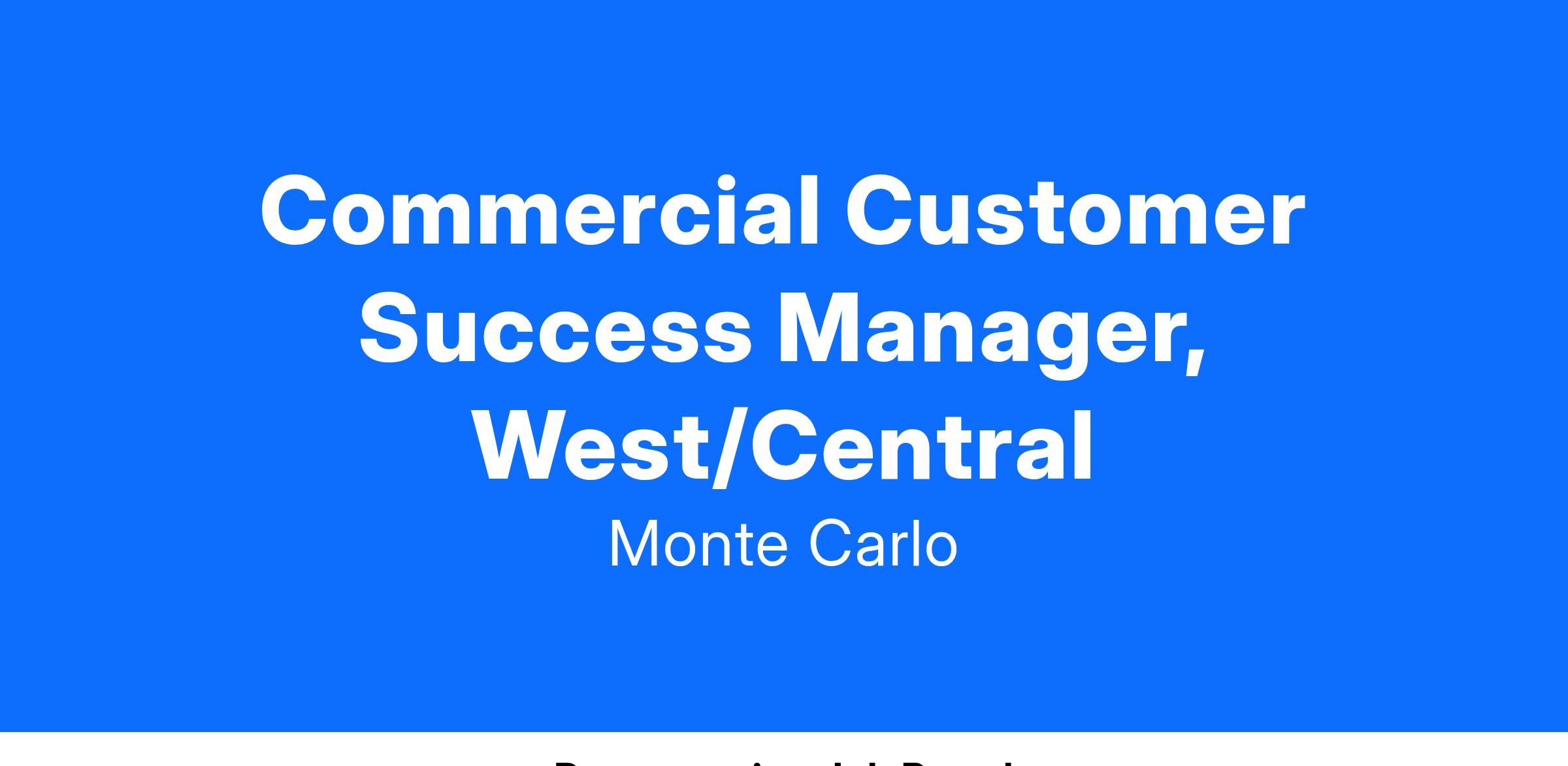 Monte Carlo is growing its Customer Success team. We're looking for a collaborative, passionate, and results-driven Customer Success Manager to join and build Monte Carlo’s Commercial CS motion. As a Commercial Customer Success Manager, you'll be responsible for designing and driving the process, engagement, and enablement of customer success at scale to drive value and results within our long-tail portfolio accounts.