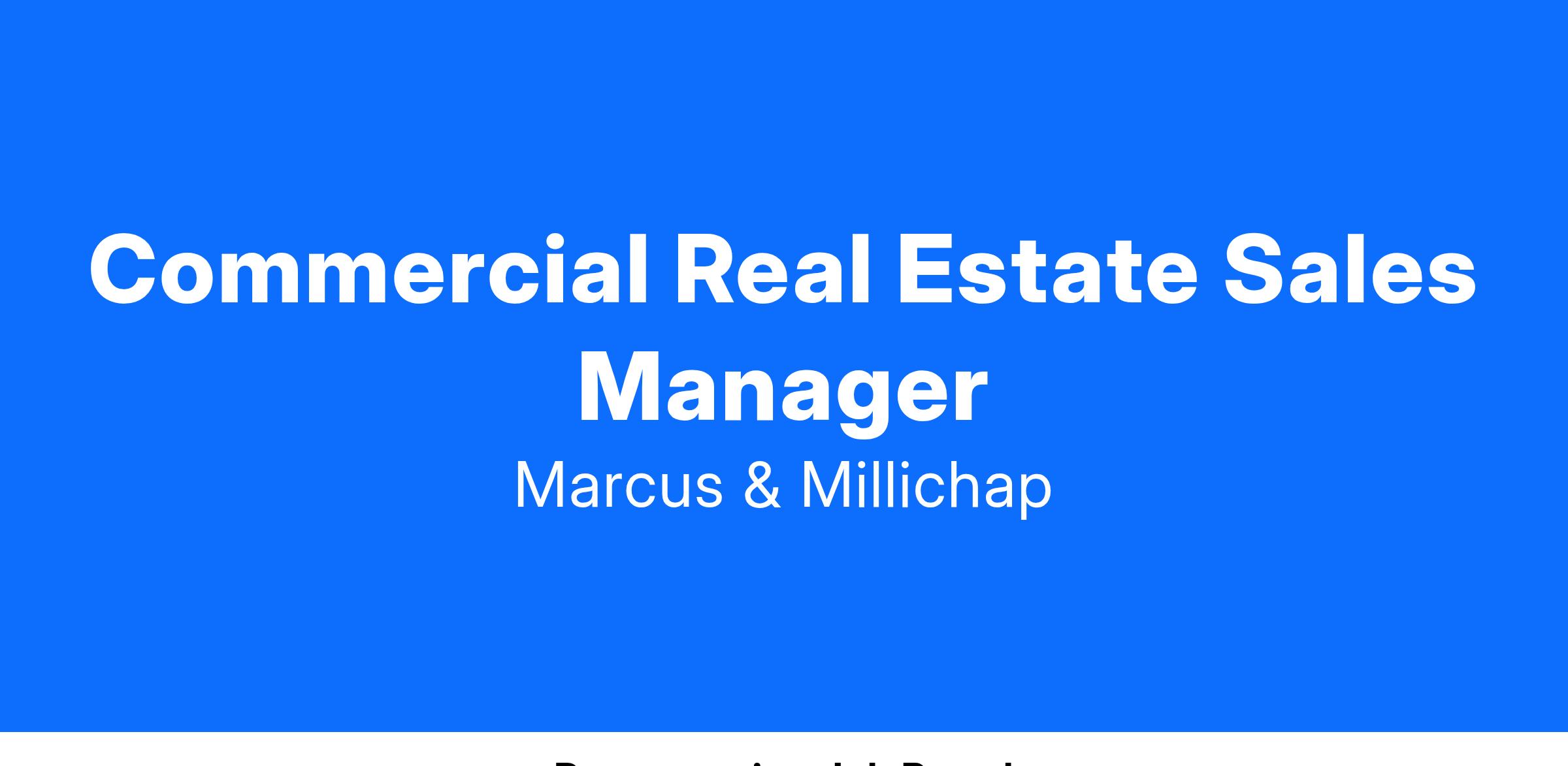 Marcus & Millichap, the industry leader in commercial real estate investment services, is expanding our management team in our Dallas office. We are seeking a seasoned Commercial Real Estate Agent/Broker to join our team as a Sales Manager.
