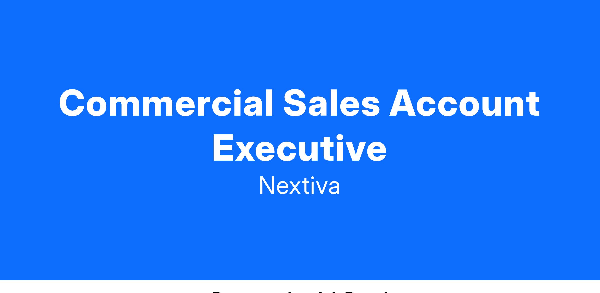How You’ll Change Our Customers’ Lives: At Nextiva, our Commercial Account Executives help our customers grow their businesses and simplify their lives by selling our products and solutions. Nextiva combines communication channels — voice, video, collaboration, SMS, and surveys — to help businesses of all sizes access the information they need at the right time to provide amazing customer experiences and drive business results.
