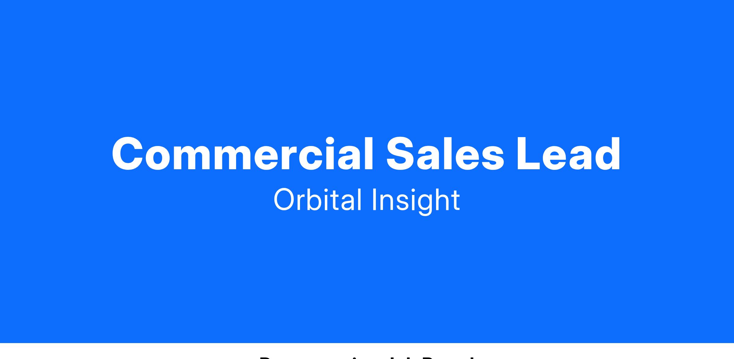 - Validate and monetize product market fit for the Orbital Insight GO platform solution through securing commercial accounts contracts