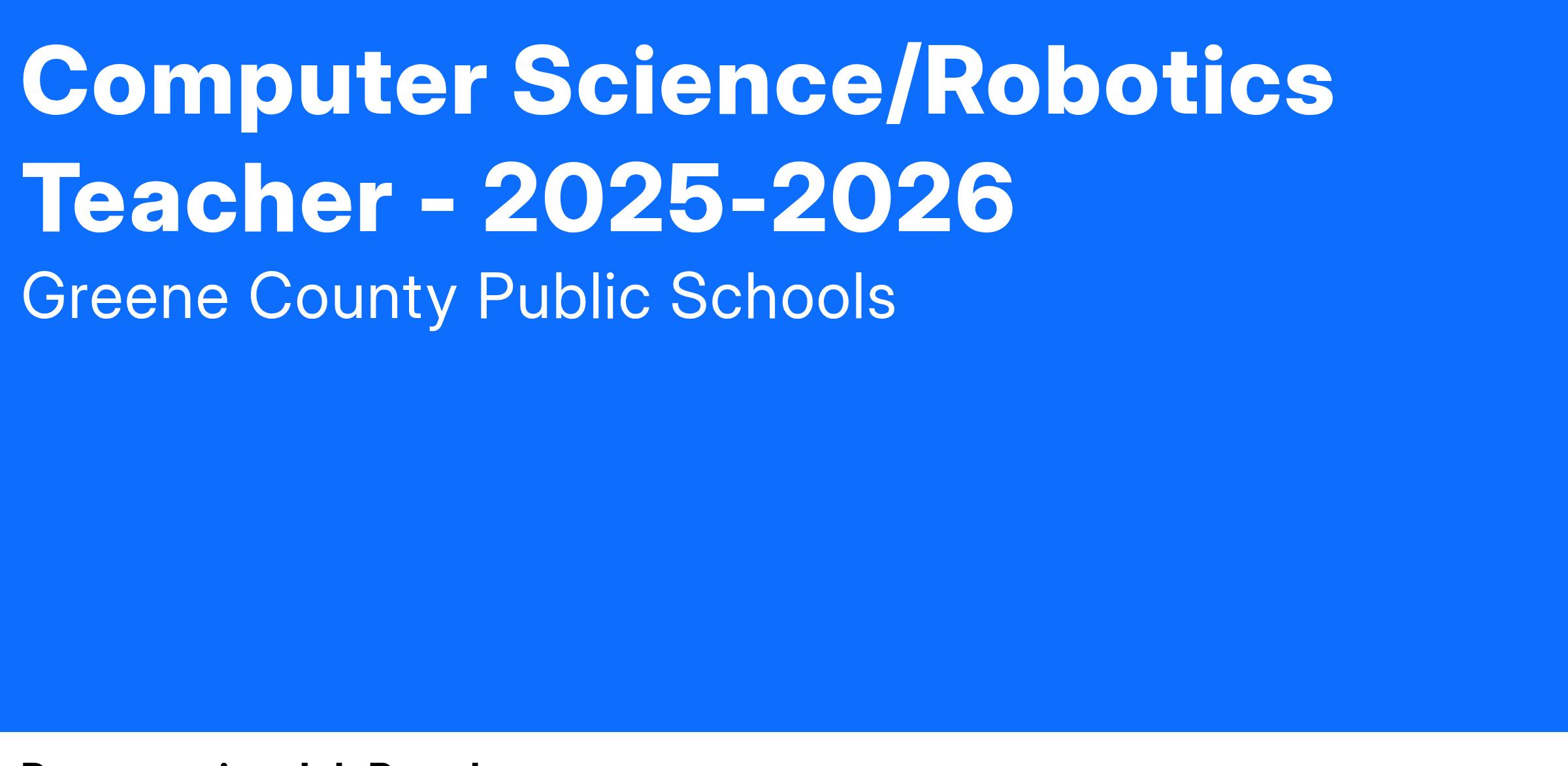 Ideal candidates will have a passion for teaching in the technology, engineering, and computer science fields with a focus on coding, engineering, robotics, and technical skills.
