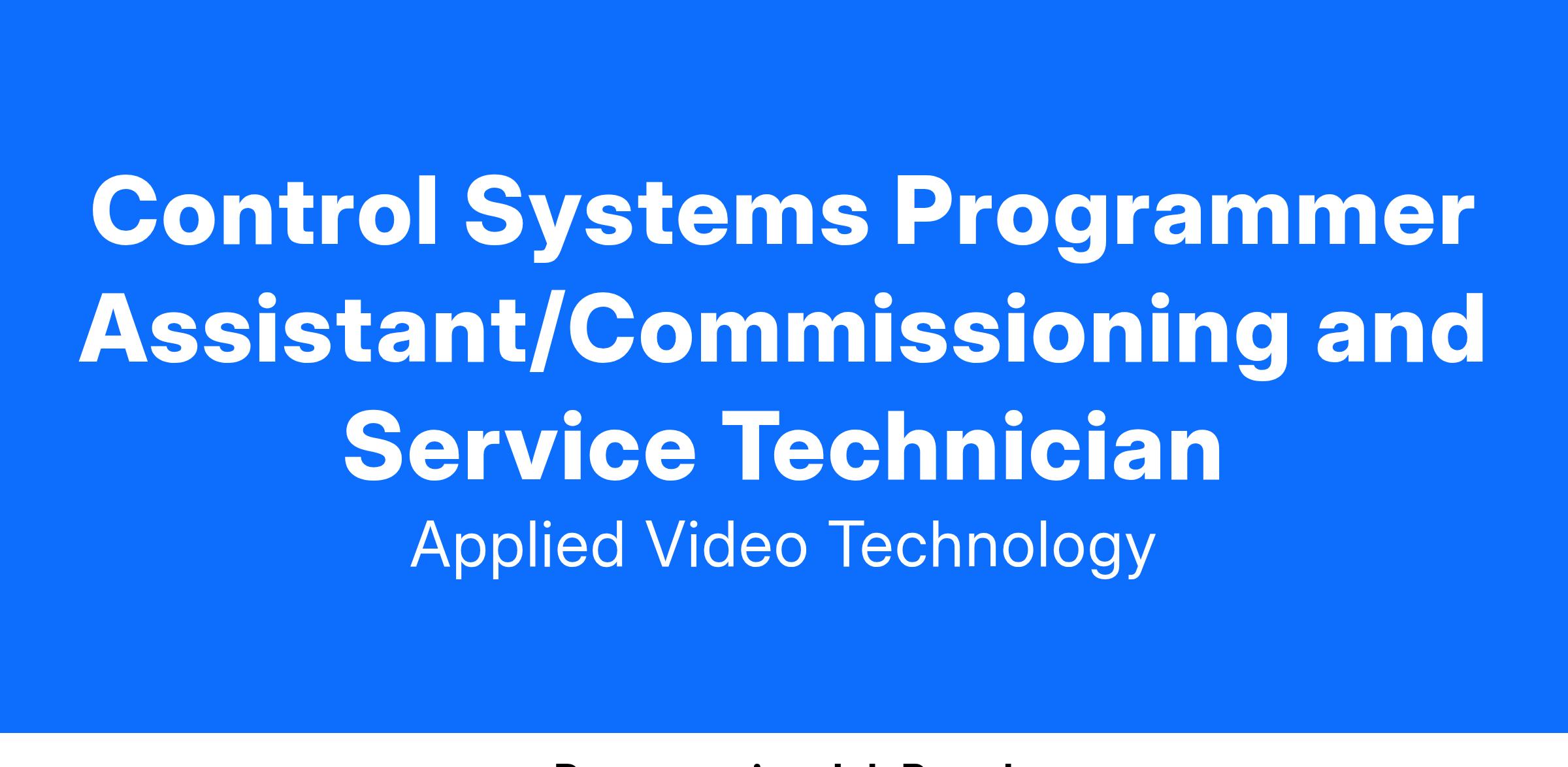 Control Systems Programmer Assistant/Commissioning and Service Technician