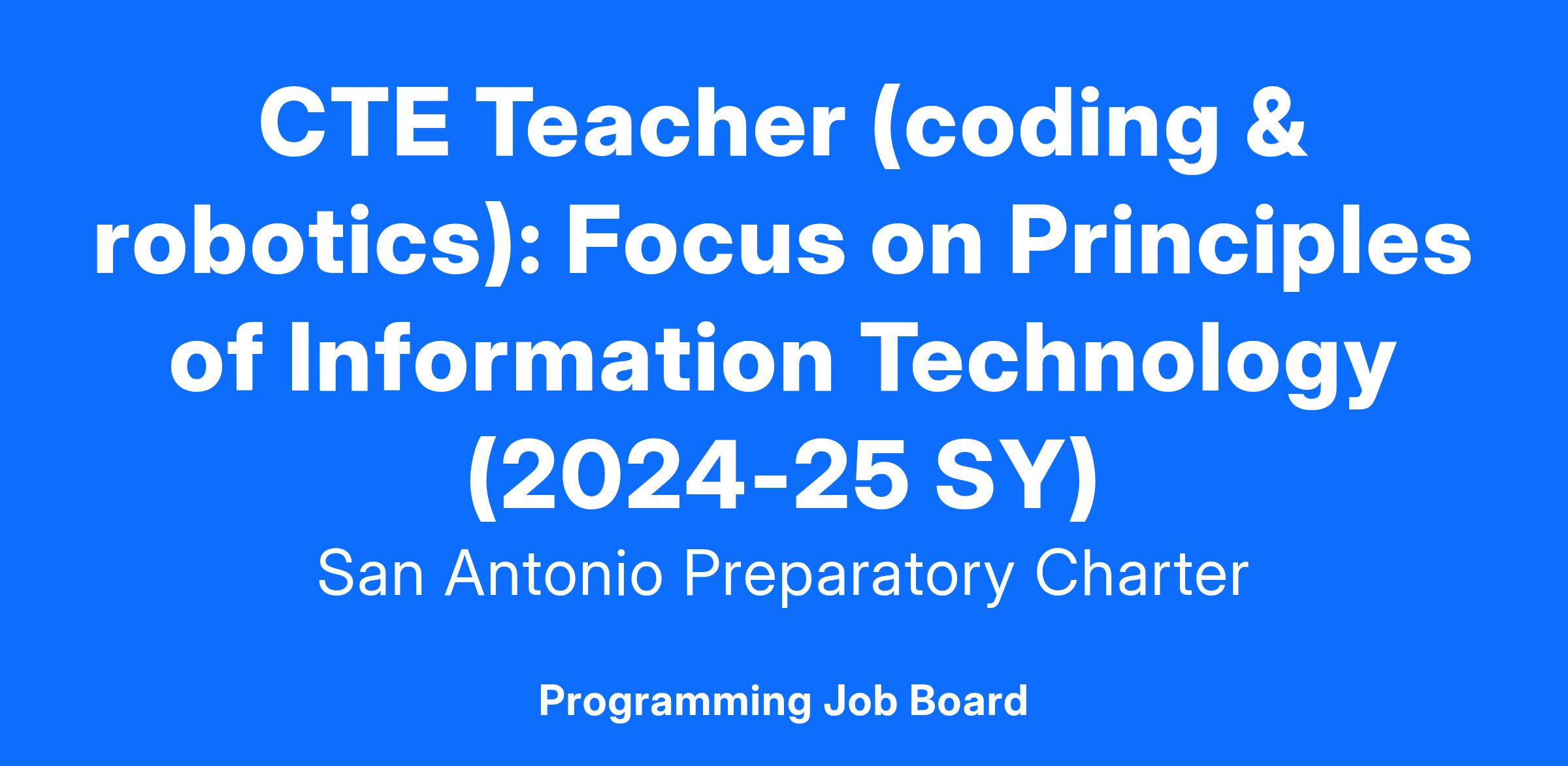 CTE Teacher (coding & robotics): Focus on Principles of Information Technology 2024-25SY