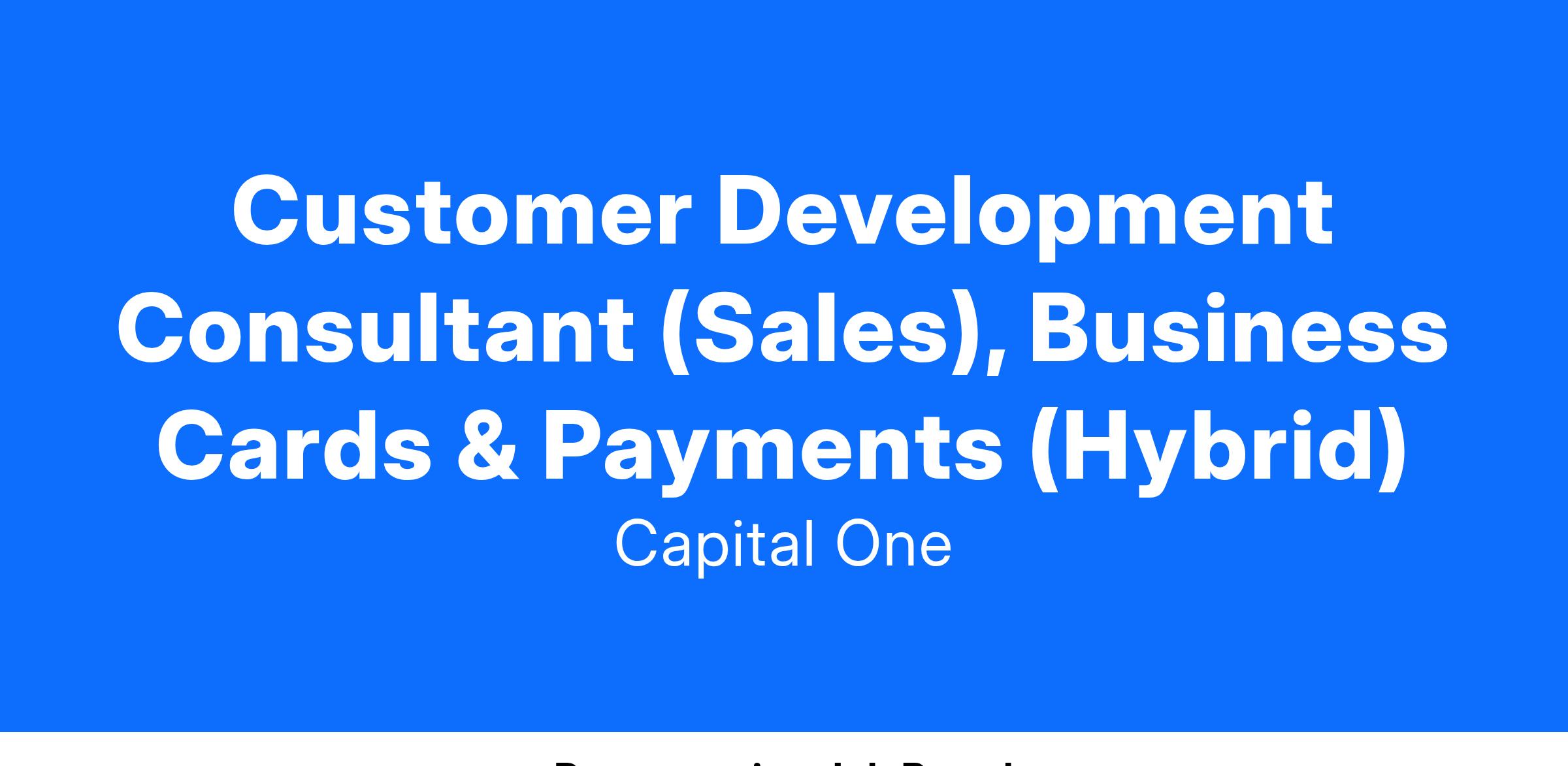 Are you a self-starter, a go-getter, and a deal maker? Are you disciplined and autonomous? Within Capital One’s Business Cards & Payments group, you will find a culture that expects and rewards excellence. We believe in unlocking the power of people and equipping them to do great things! We are looking for like-minded people who can share our passion for success and a high sense of urgency to deliver on customer needs.