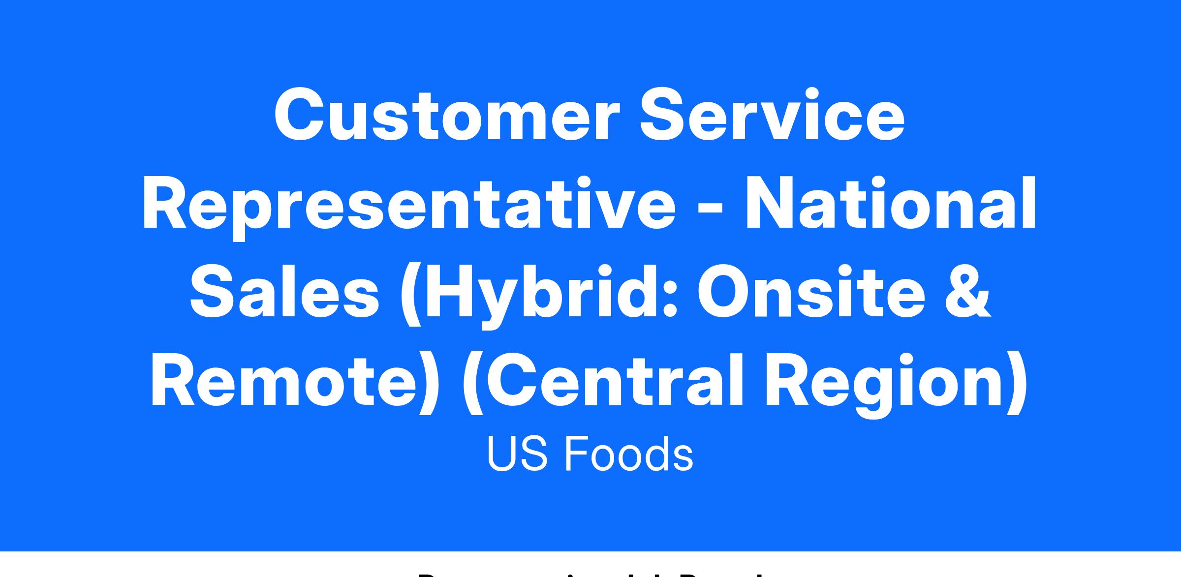 This position has been segmented as hybrid meaning the work is a combination of approximately 90 percent remote/virtual and 10 percent onsite at distribution center offices located anywhere in the Central Region of the United States as follows: Bismarck ND, Grand Forks ND, Plymouth MN, Milwaukee WI, Chicago IL, Streator IL, Iowa City IA, St Louis MO, Salem MO, Omaha NE, Grand Island NE, Kansas City KS, Loveland CO, Denver CO, Oklahoma City OK, Dallas TX, Austin TX, Houston TX, within a 50 mile distance to the listed Distribution Offices.Ready to build a career with a company that’s leading the foodservice industry?