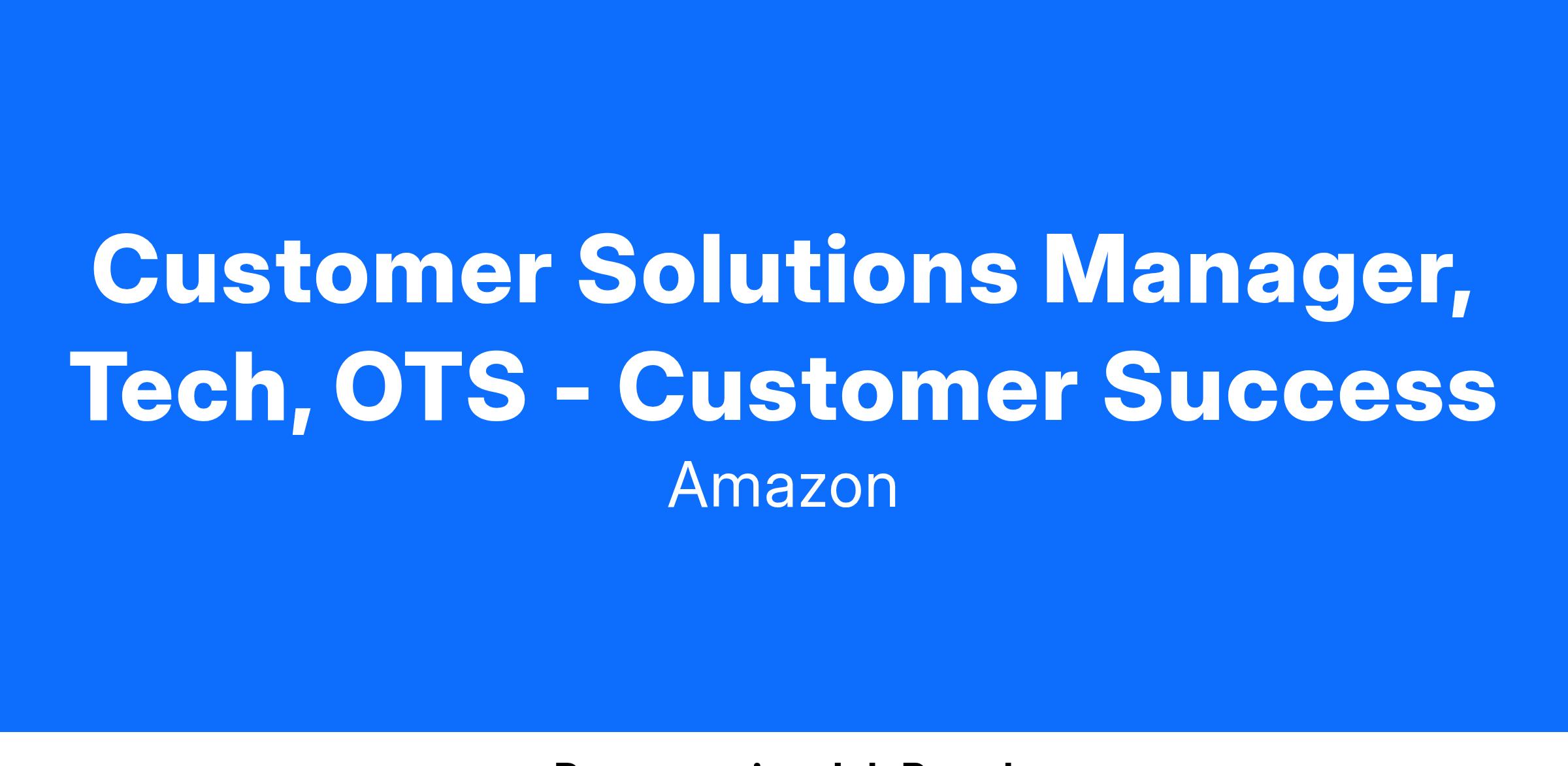 Customer Solutions Manager, Tech, OTS - Customer Success