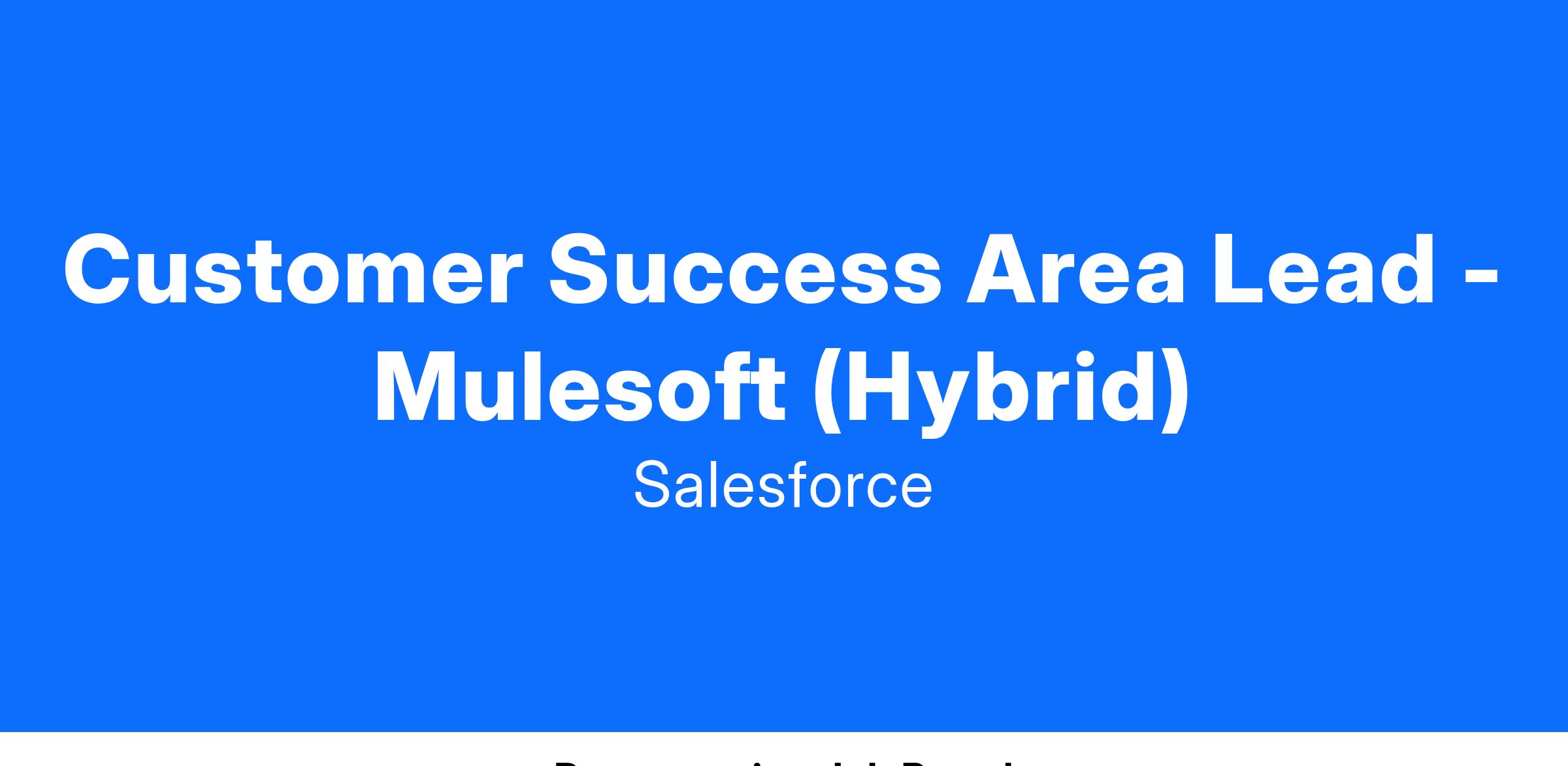 For our customers who wish to get the most value out of their Salesforce investment, and specifically the MuleSoft Anypoint Platform, with an enterprise experience and the fastest support, delivered by our most skilled authorities, they purchase our Success Plans. The Customer Success Area Lead will work closely with key sales leaders, CS investment teams, and other collaborators to prevent attrition and drive solutions for our designated customers/accounts. This role plays a critical part in strategizing, prioritizing, and enhancing internal relationships; ensuring our customers receive the support they need to succeed with MuleSoft by working internally with the right teams at the right time.