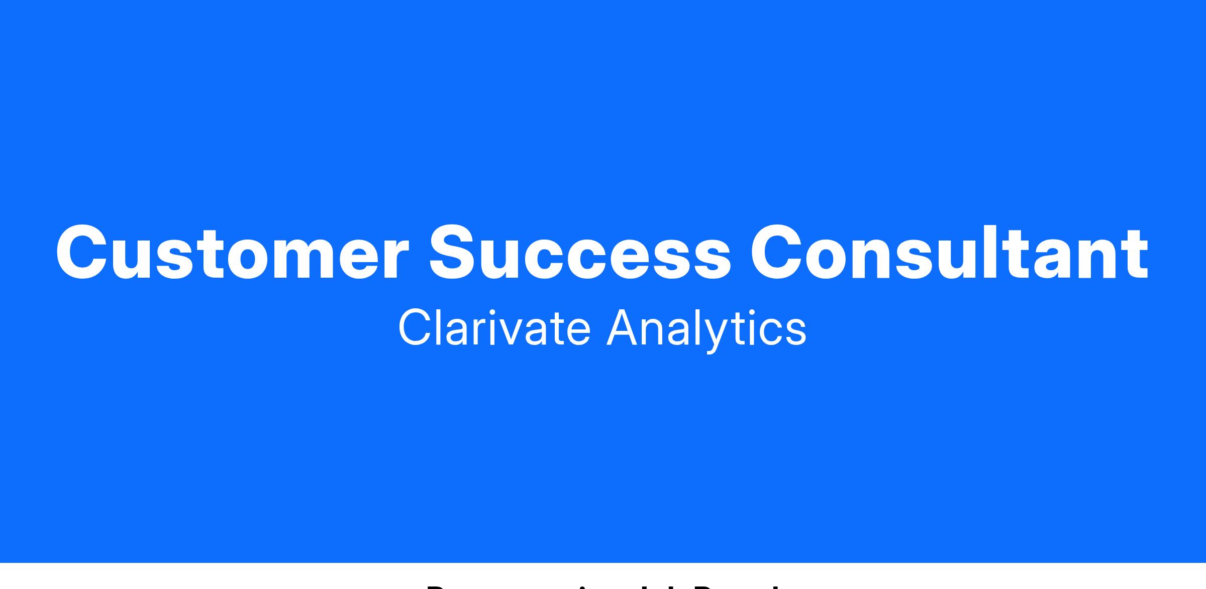 - Work closely with fellow Customer Success Consultants, Customer Success Managers, Digital Education, Product Management and Marketing.