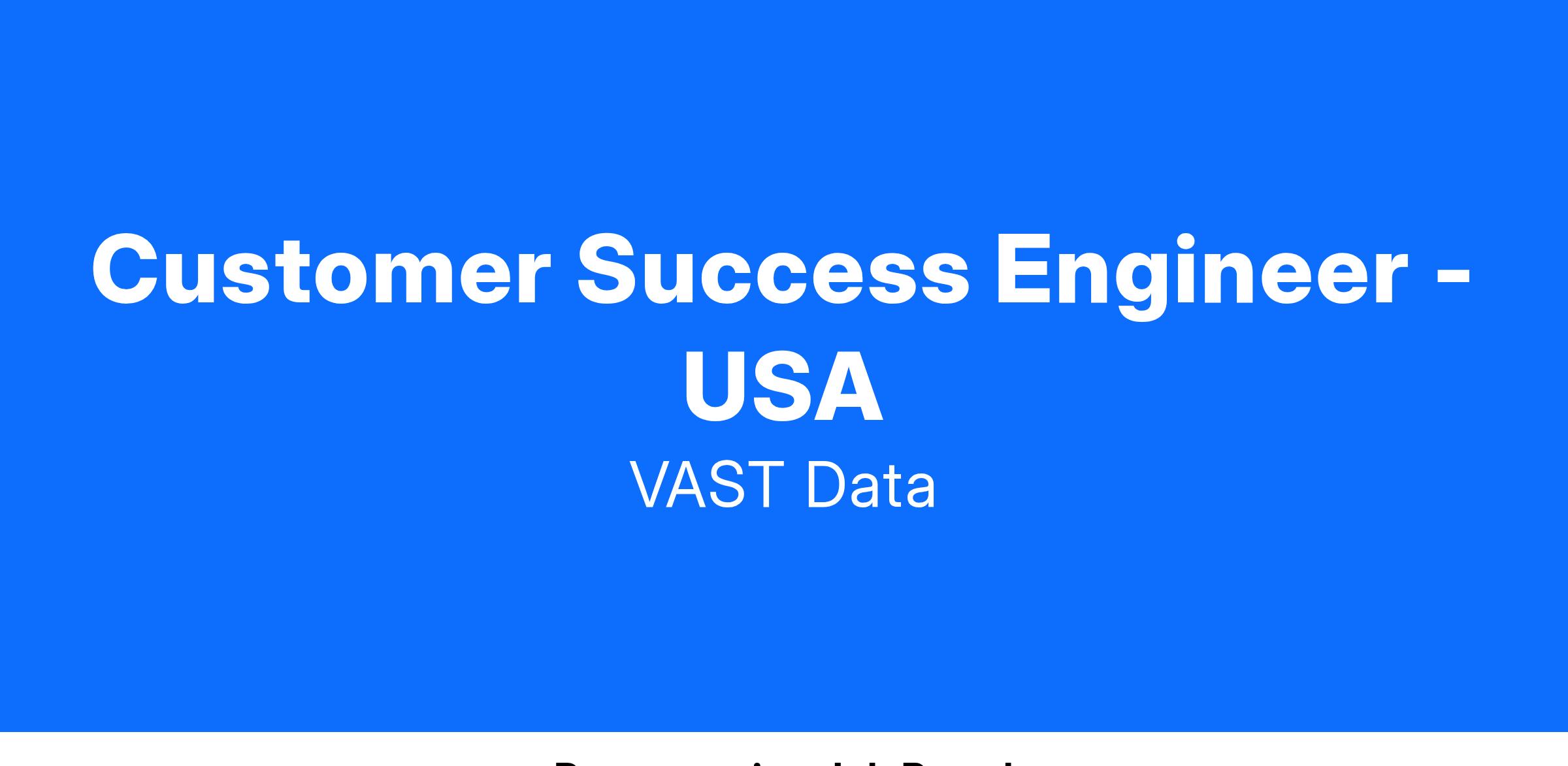 - Identify opportunities to provide continuous improvement for customers to ensure full adoption and usage of VAST products.