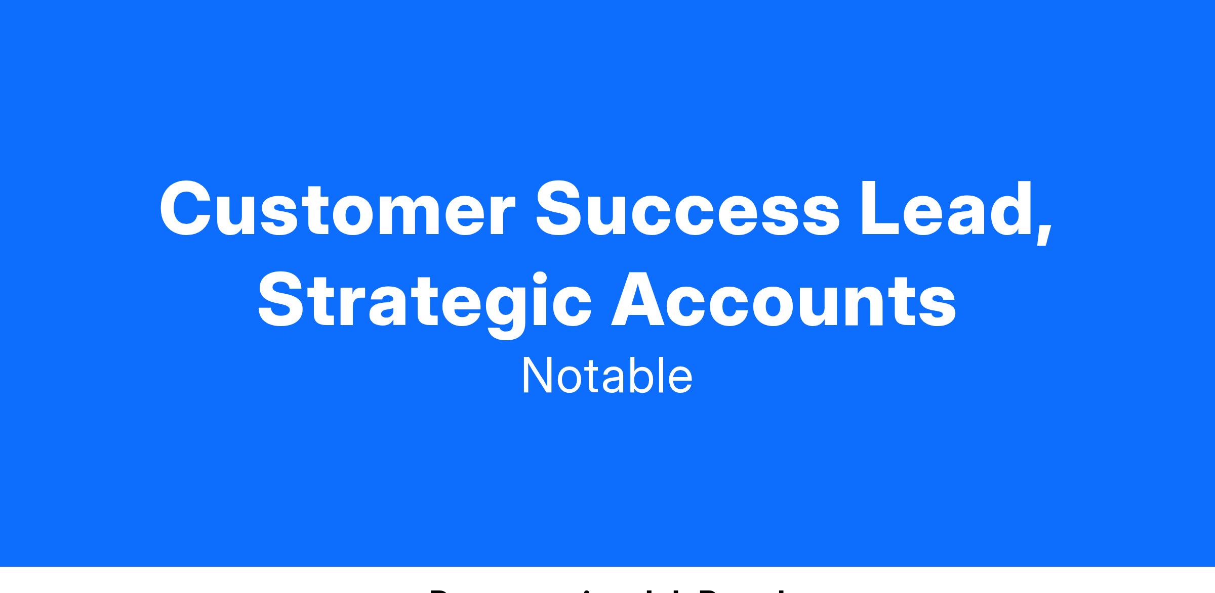 As a Customer Success Lead for strategic accounts at Notable Health, you will be the orchestrator of customer success for our most valuable and complex healthcare clients. You will immerse yourself in their world, understanding their unique needs, challenges, and ambitions, and then leverage Notable's full platform capabilities to drive transformative outcomes. This is a highly visible role that requires a blend of technical expertise, relationship-building, commercial acumen, and a passion for driving innovation in healthcare.