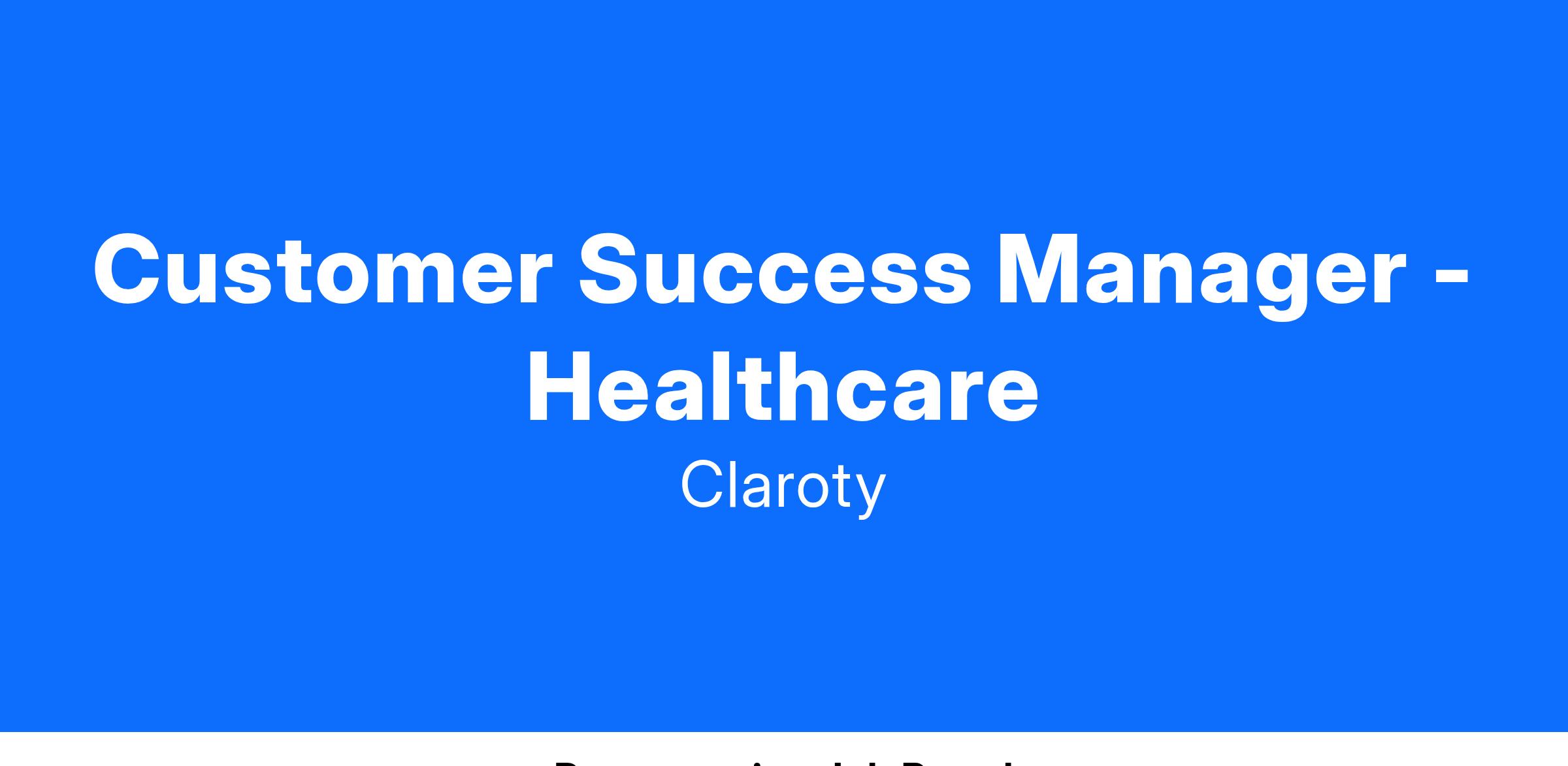 - Take accountability for the success of Claroty’s healthcare customers, their satisfaction, and the value they get from our products by taking their perspective and business needs as priority