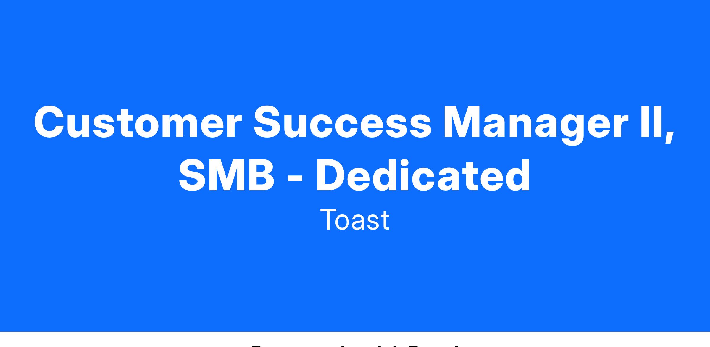 The SMB CSS team operates in a highly cross-functional role responsible for a regionally based book of business of our most influential & highest revenue SMB customers. These CSMs will be located in specific geographic regions. They will be hyper-focused on helping customers navigate Toast early in their customer journey.