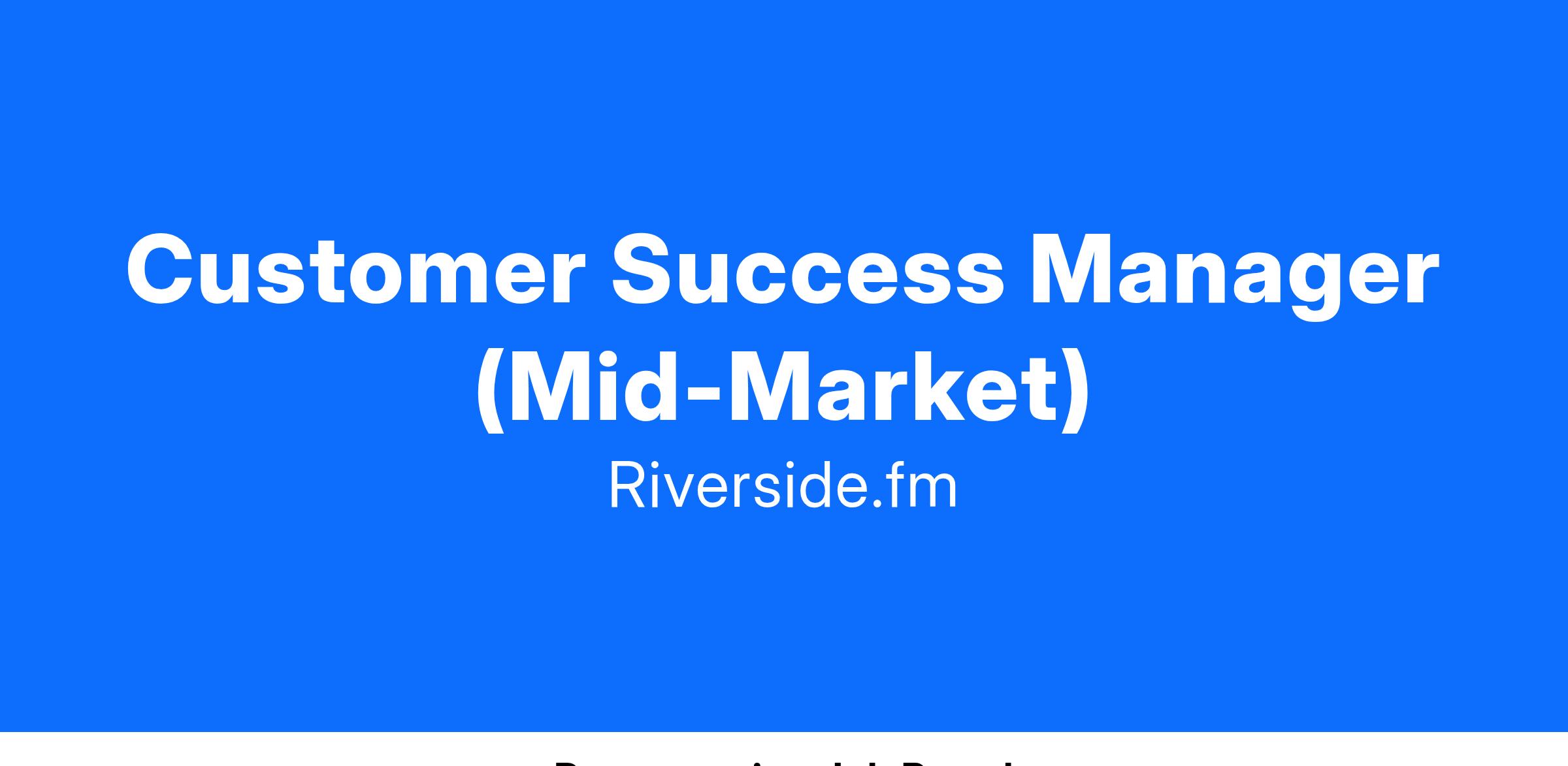 Riverside makes it easy to record remote podcasts and video interviews that look and sound like they were recorded in a million-dollar studio. Since launching, we have experienced rapid growth and are trusted by customers including Spotify, the New York Times, LinkedIn, and Marvel. We are a resourceful and growing team who are looking for top talent to join us and help shape the future of Riverside.