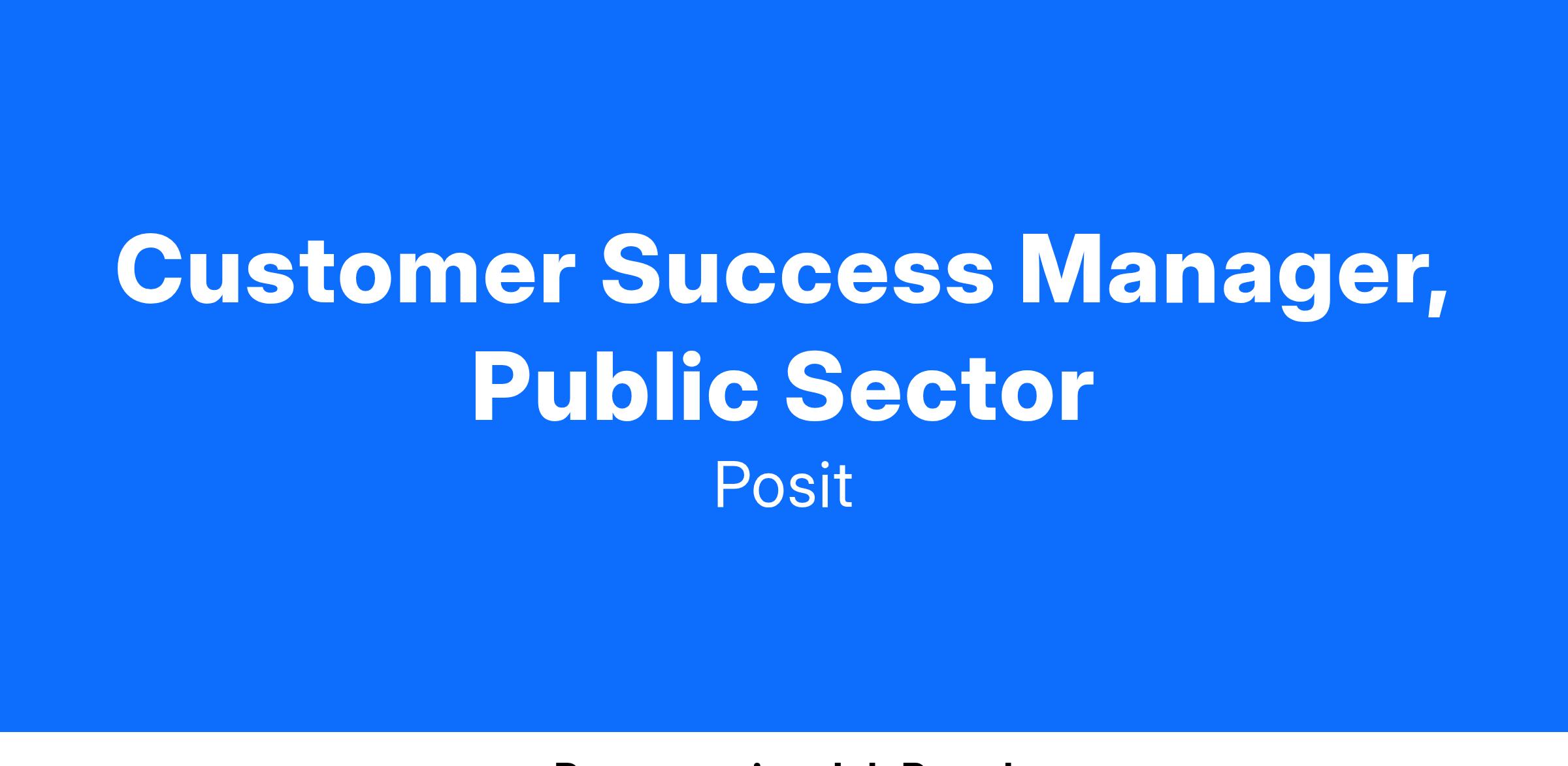 - Be seen as a trusted business-advisor and Posit expert, making a significant impact on the Customer Success team