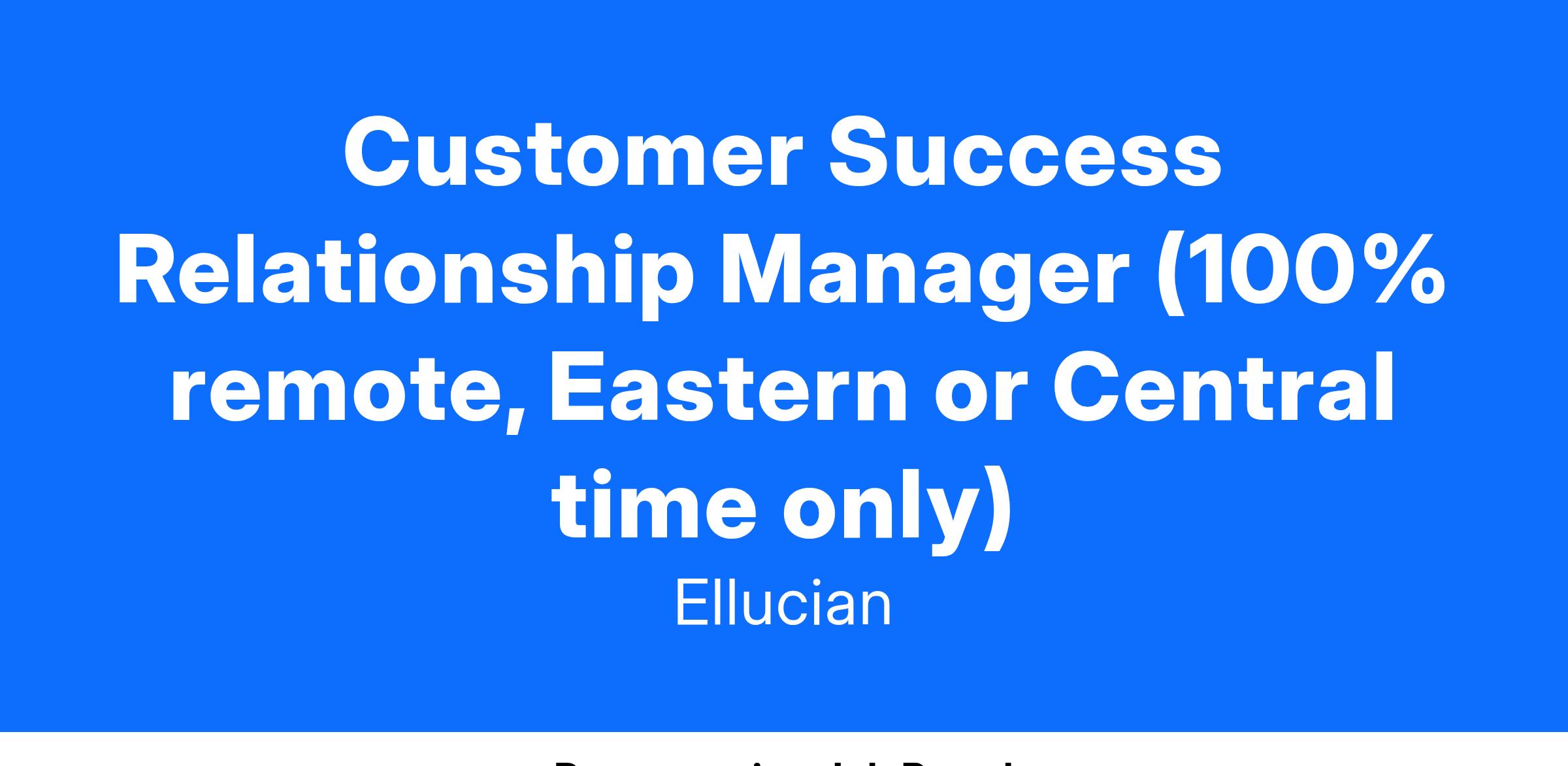 Customer Success Relationship Manager (100% remote, Eastern or Central time only)