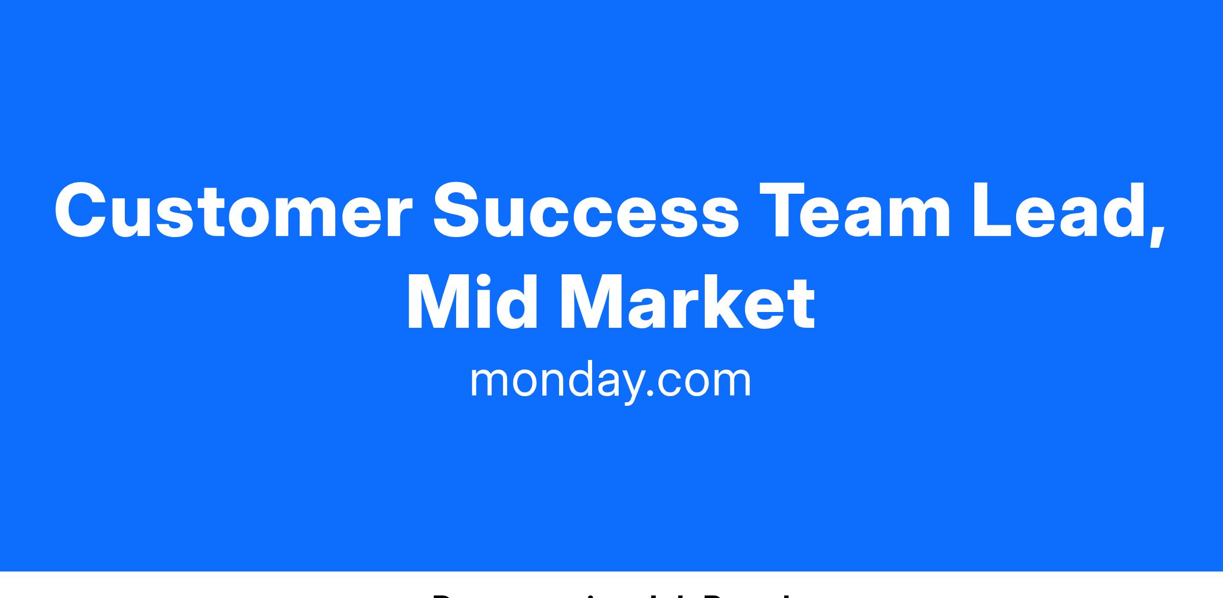Our Customer Success team is growing rapidly, and we are looking for a Team Lead to expand and manage a group of Mid-market HT CSMs! This individual will help drive Monday.com's success and customer retention.