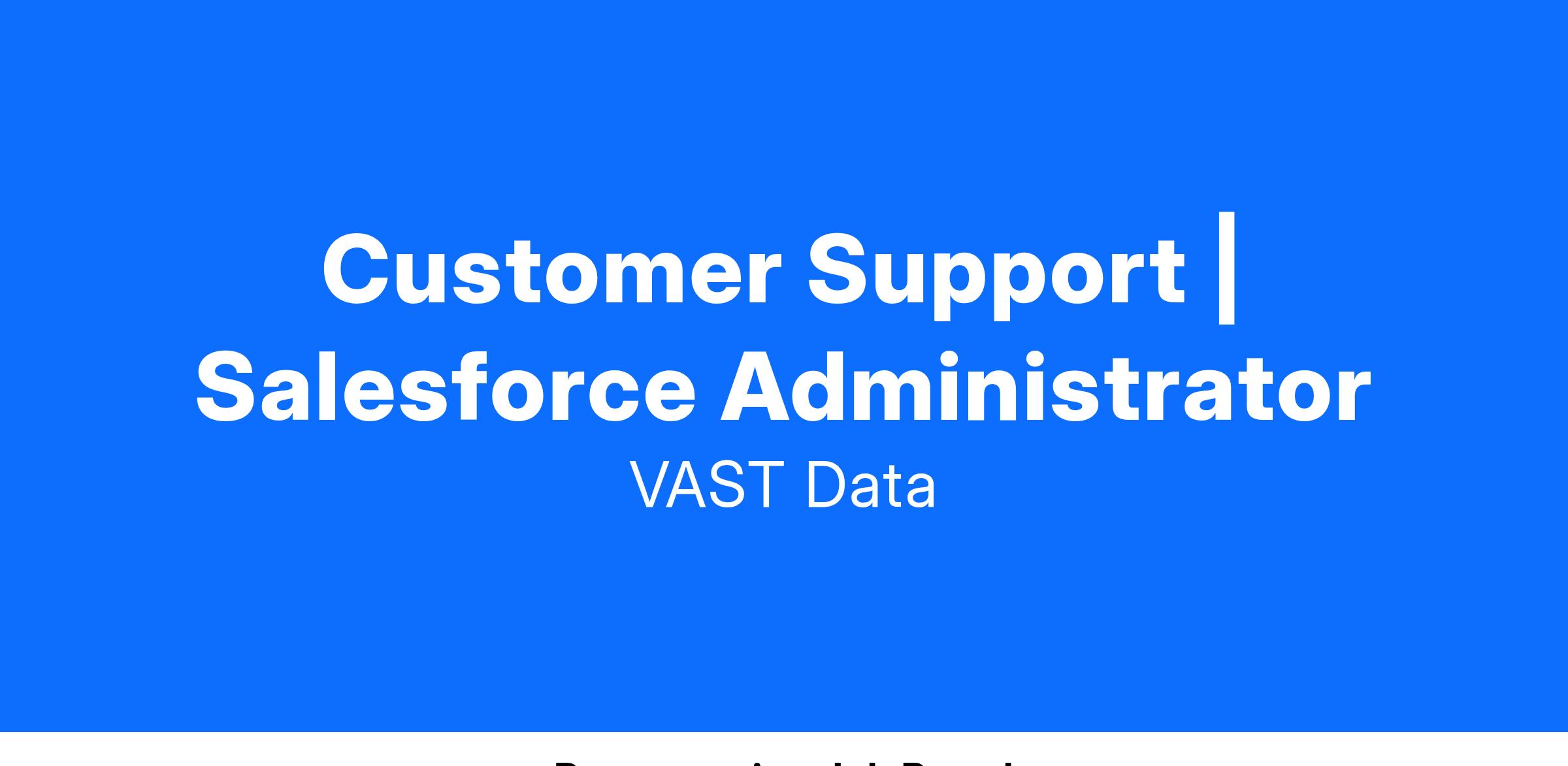 This will be a technical resource that combines an extensive Salesforce admin experience with a strong understanding of Customer Success (CS) related programs, org structures, tools, best practices, and strategies. This resource will be dedicated to supporting VAST Dataβs Customer Success (including customer support and professional services teams, working directly with all levels of the organization. This technical role would be focused on 5 main areas, related specifically to our organizationβs use of Salesforce in the broader business context: