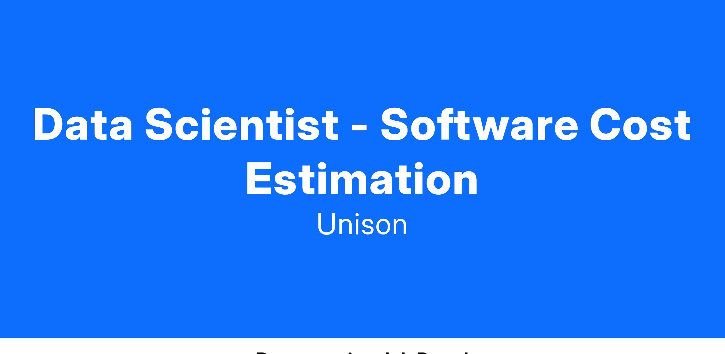Join Unison Cost Engineering (UCE) as a Data Scientist - Software Cost Estimation and play a pivotal role in revolutionizing software cost estimation. As a key member of our team, you will develop advanced models to accurately estimate the cost, effort, and schedule for software projects, helping our clients navigate the complexities of software development and maintenance. Embrace this exciting opportunity to leverage your expertise in software engineering, cost estimation, and model-building to shape the future of software cost estimation.Β