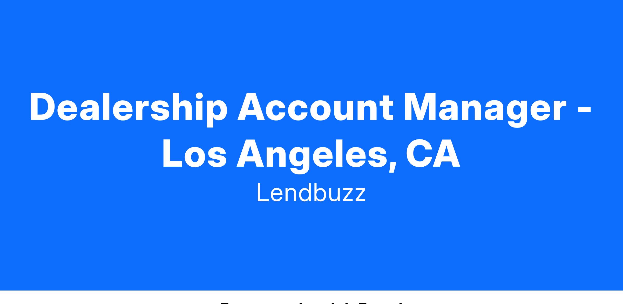 At Lendbuzz, we value innovation and diversity and are committed to driving success in the automotive industry. As a Dealership Account Manager, you’ll play a key role in our growth and impact in the auto finance space.