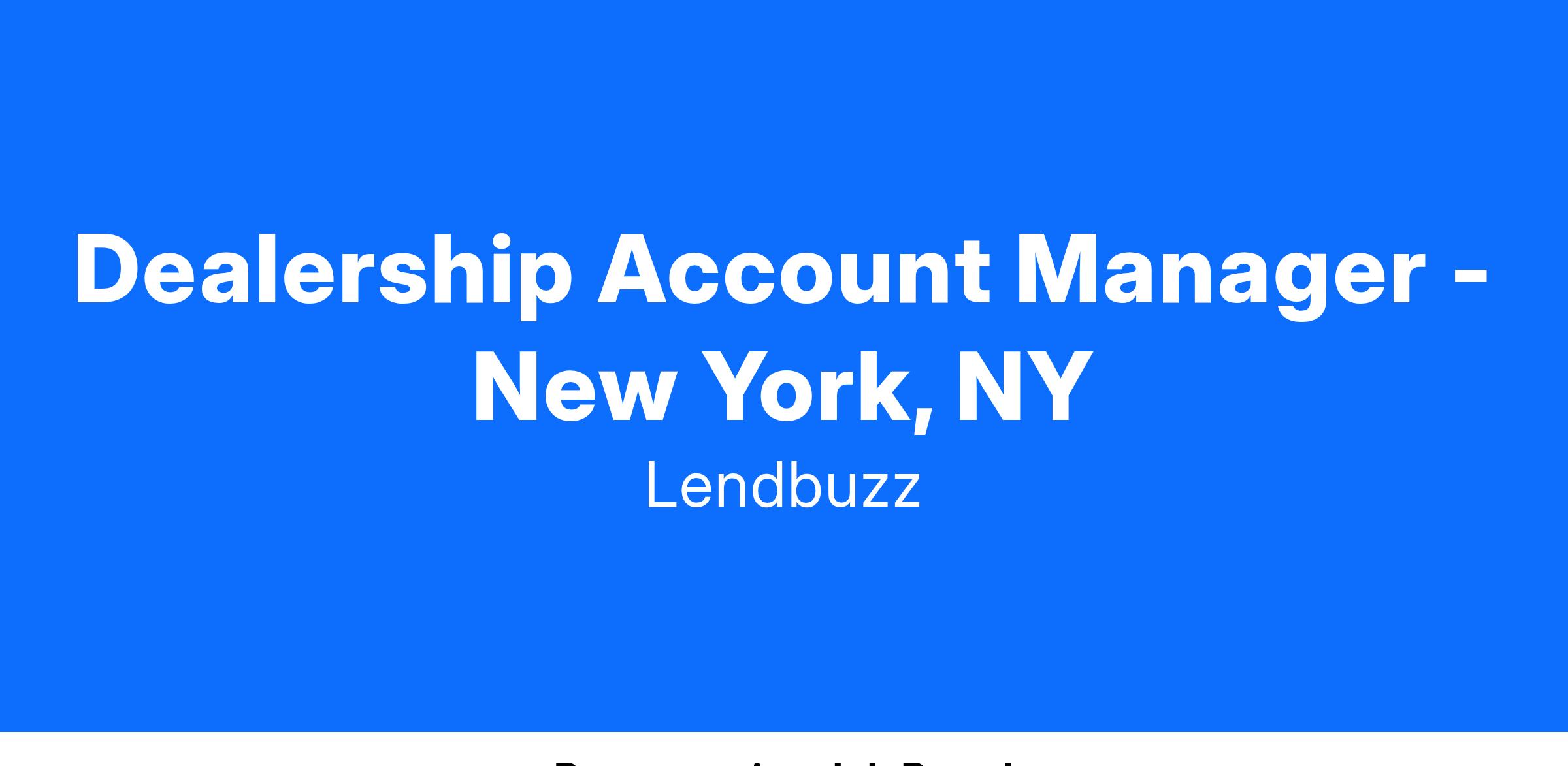 Are you passionate about driving success in the automotive industry through innovation and diversity? Lendbuzz is seeking a talented Dealership Account Manager to join our dynamic field sales team in New York, NY. This role is ideal for an auto finance expert eager to boost market share and forge strong relationships with dealership partners.