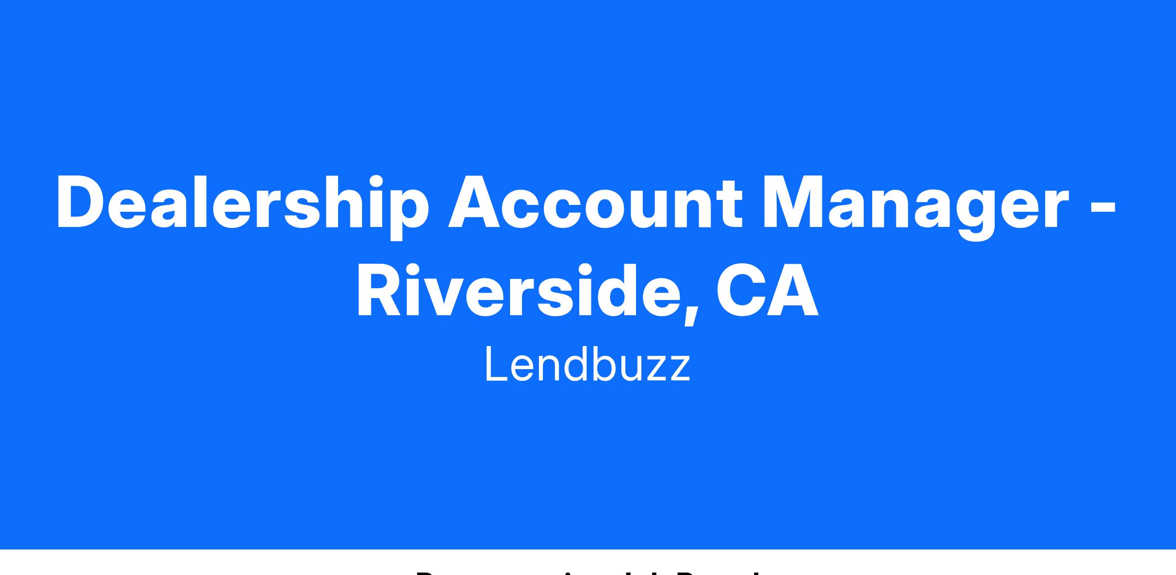 Are you passionate about driving success in the automotive industry through innovation and diversity? Lendbuzz is seeking a talented Dealership Account Manager to join our dynamic field sales team in Riverside, CA. This role is ideal for an auto finance expert eager to boost market share and forge strong relationships with dealership partners.