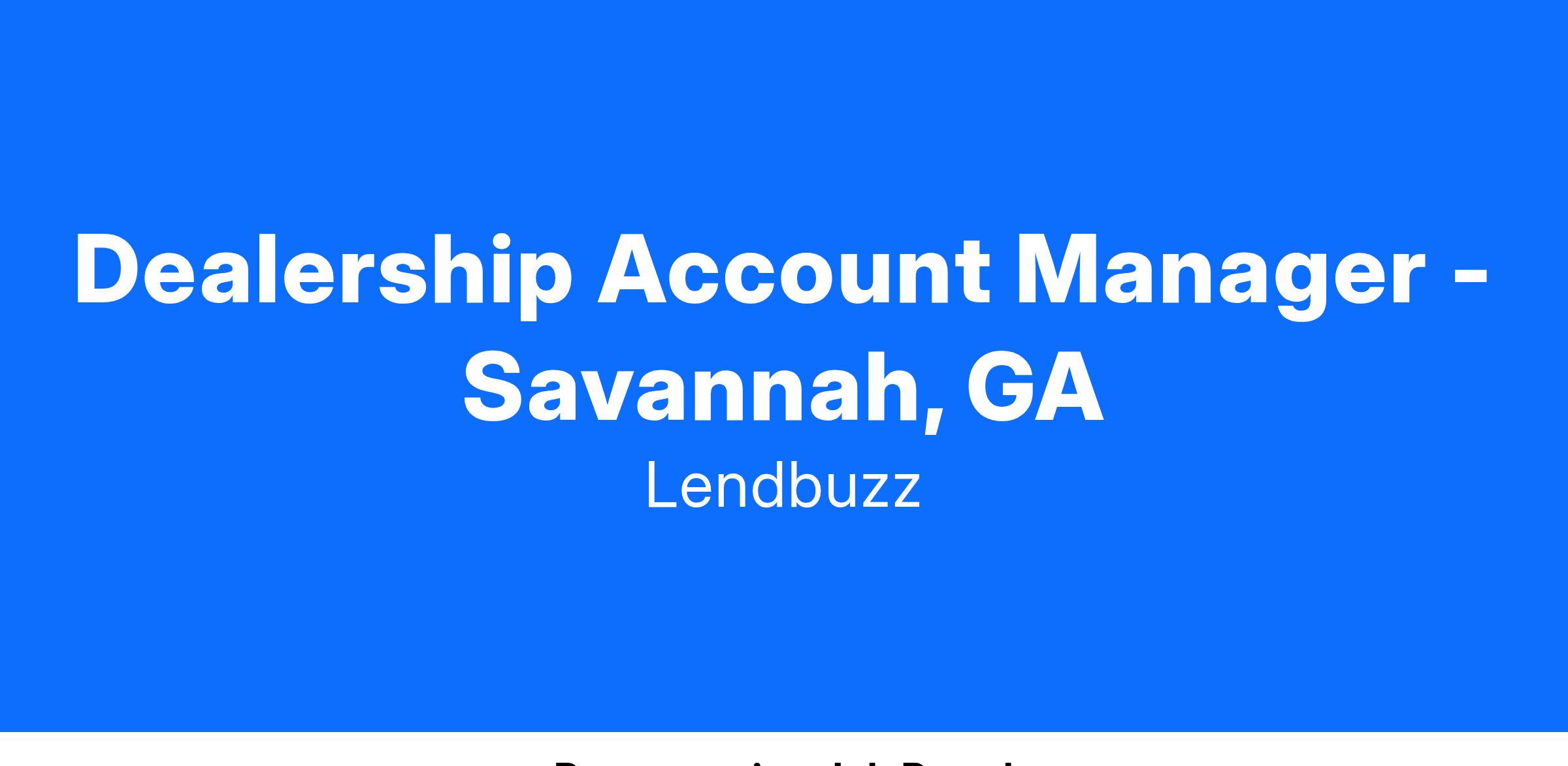 Are you passionate about driving success in the automotive industry through innovation and diversity? Lendbuzz is seeking a talented Dealership Account Manager to join our dynamic field sales team in Savannah, GA. This role is ideal for an auto finance expert eager to boost market share and forge strong relationships with dealership partners.