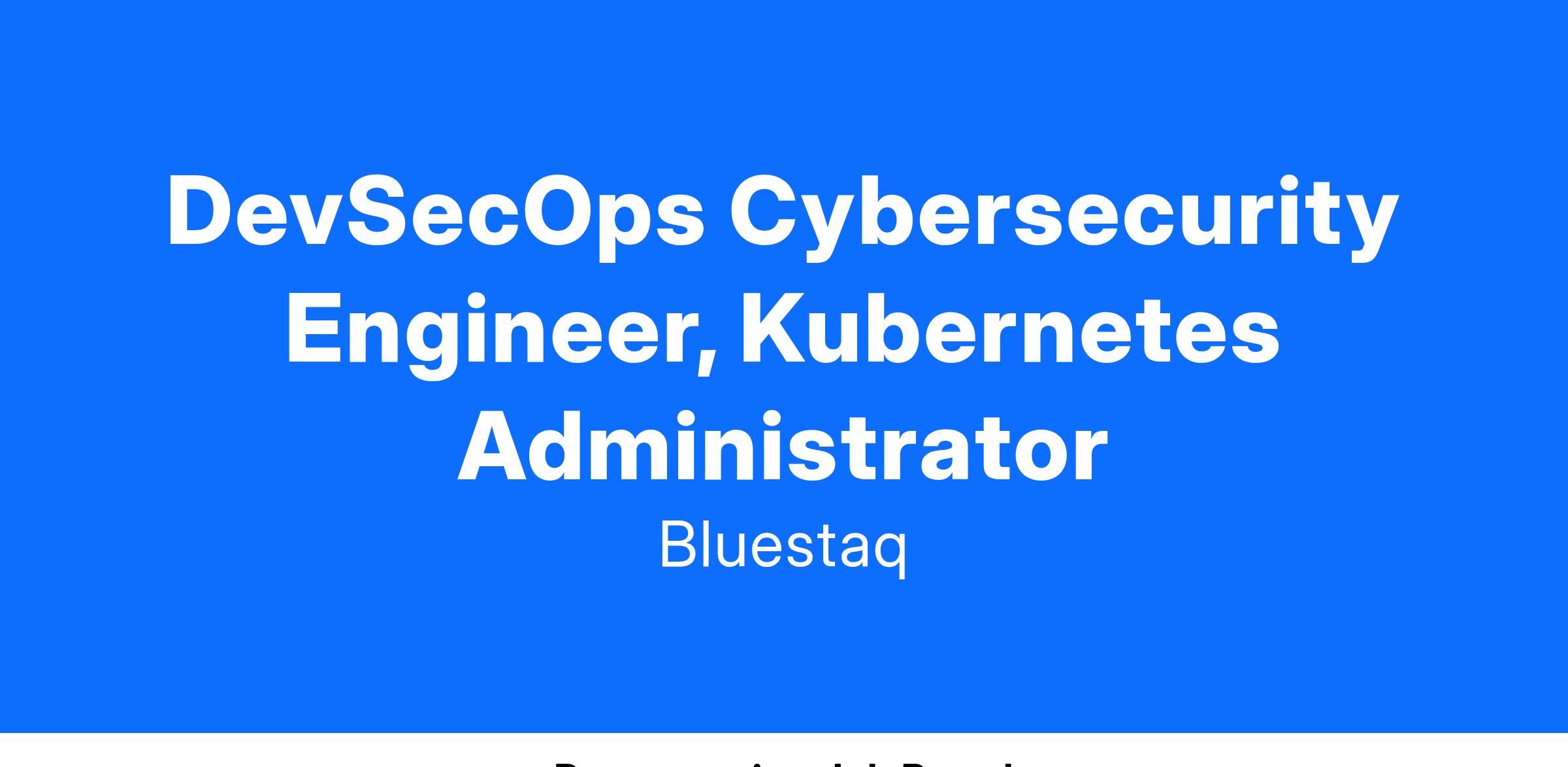DevSecOps Cybersecurity Engineer, Kubernetes Administrator