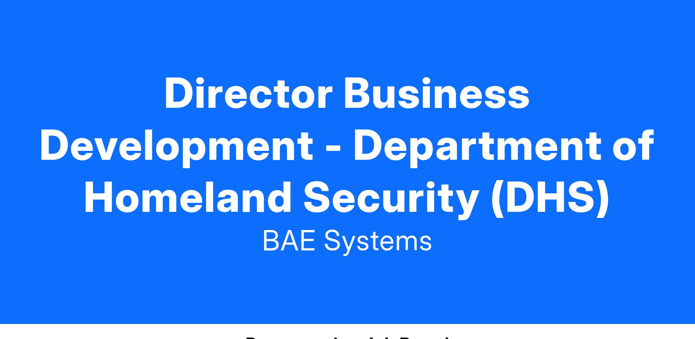 Director Business Development - Department of Homeland Security (DHS)