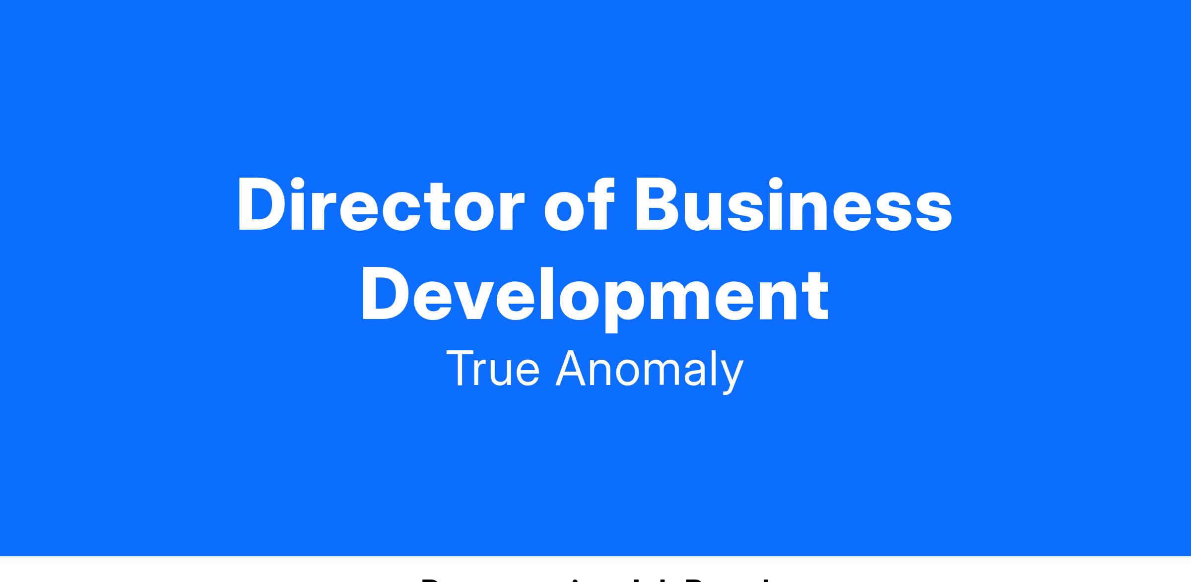 The Business Development team at True Anomaly is growing! As the Director of Business Development, you will be responsible for identifying, shaping, capturing and growing new opportunities and capabilities for the company. You are a dynamic leader who craves a deep understanding of your customer, is knowledgeable about the DoD’s acquisition process, and has a proven track record of driving revenue and growth. You think strategically about go-to-market and act tactically to drive deals close.
