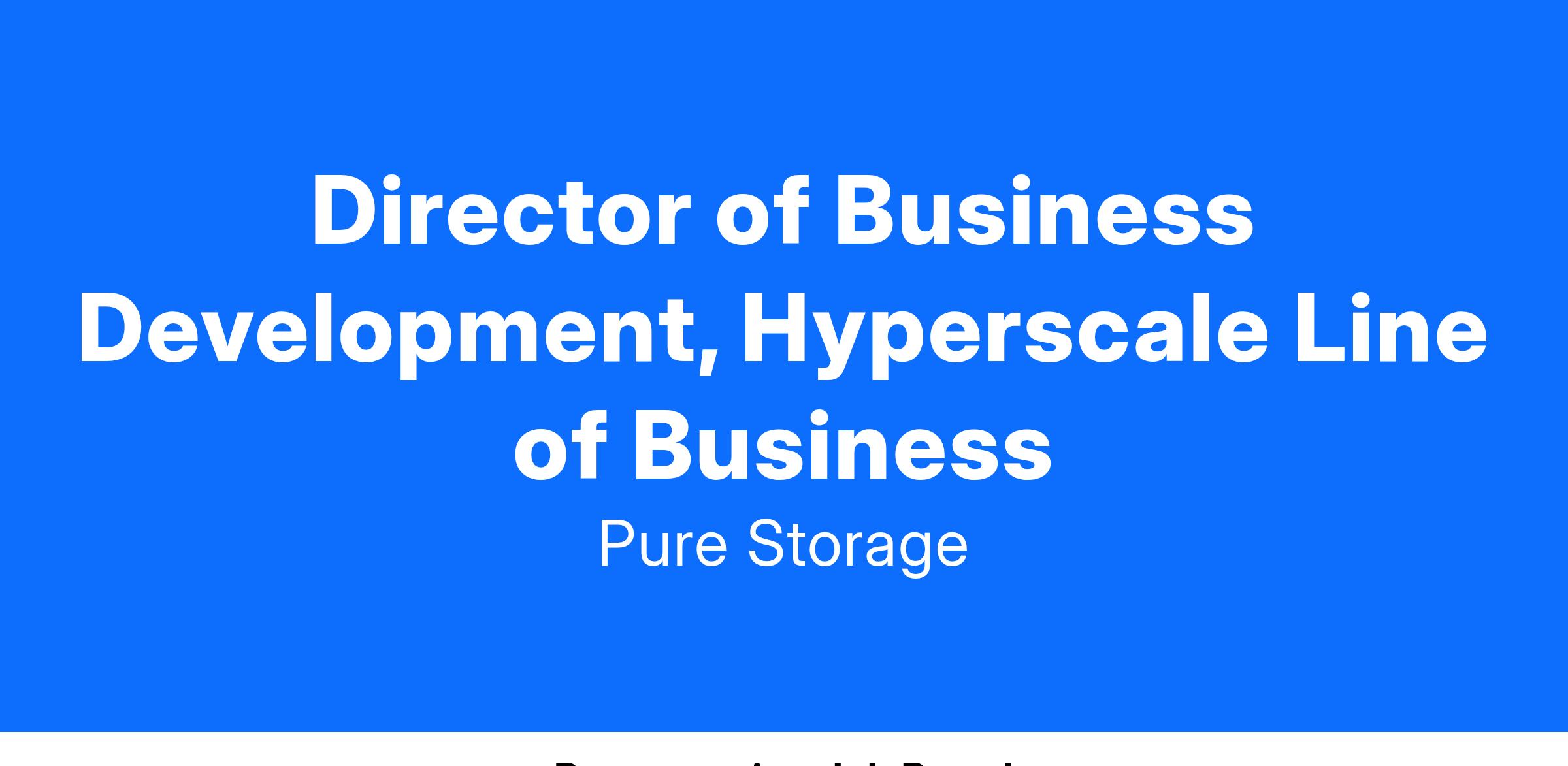 Pure Storage is seeking a business development leader for our Hyperscale Line of Business, which is responsible for bringing Pure platforms to large-scale public and private clouds.