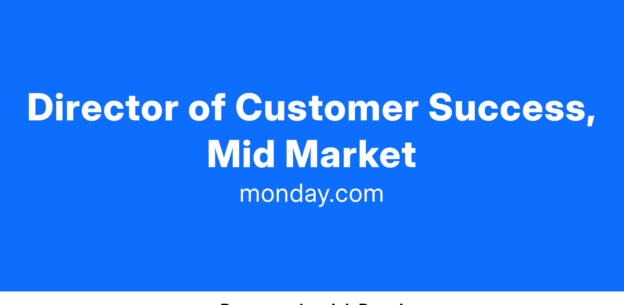 monday.com is looking for an experienced Customer-Success leader to oversee our large & growing MM High-Touch CS team, consisting of multiple teams. The Regional Director of CS - MM, will oversee the adoption, retention and satisfaction of all of our "High Touch" customers in the Mid-Market segment. Overseeing up to 5 teams of CSMs, the Regional Director of CS will need to coach and develop our MM CS managers.