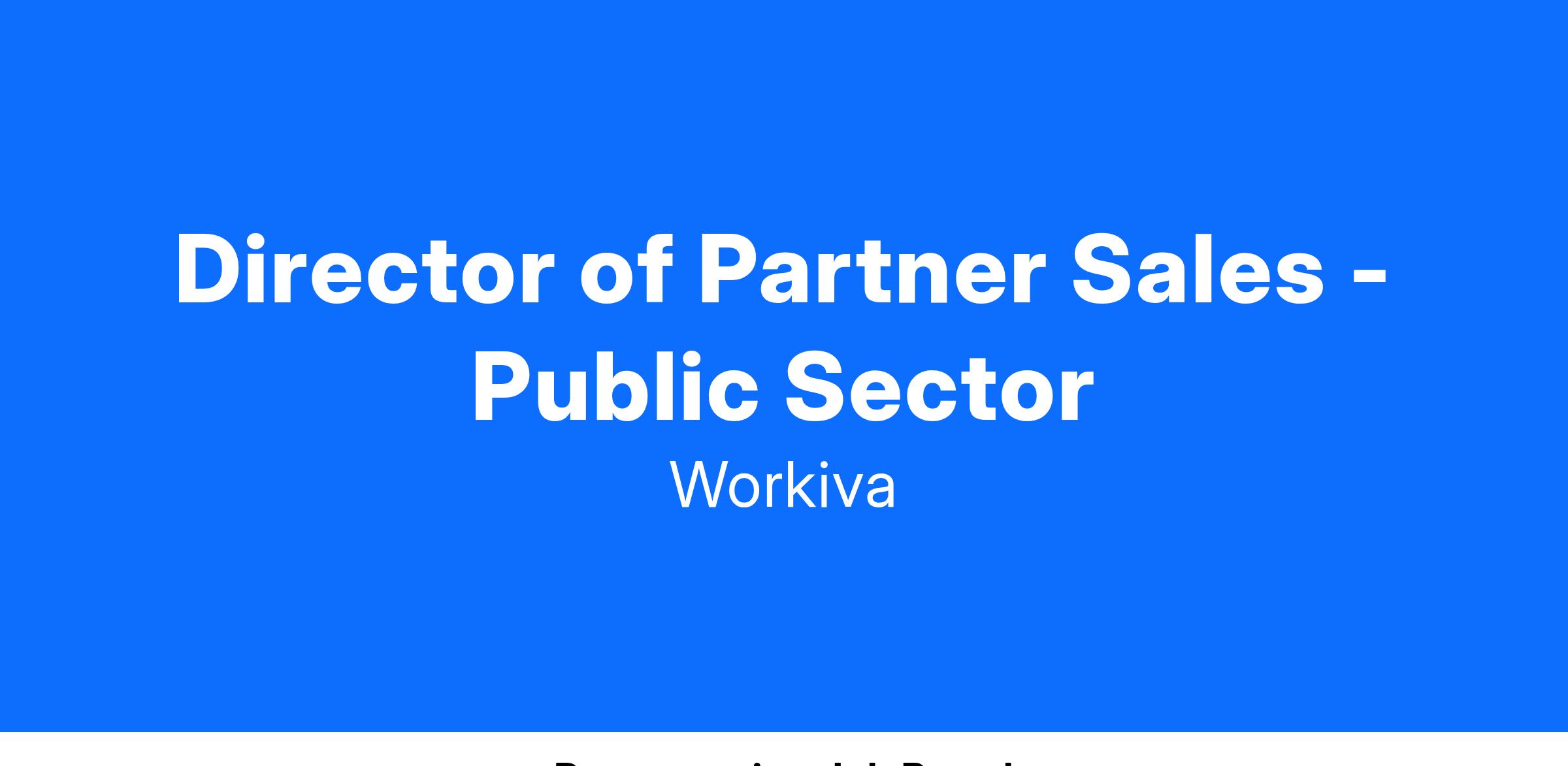 The Director of Partner Sales - Public Sector is a driving force in the establishment, growth, and GTM strategy within Workiva for our Public Sector vertical. The Director will leverage their experience to identify and establish new partnership opportunities, optimize existing partner relationships, and develop offerings and accelerators relevant to the Public Sector vertical, while driving net-new growth. This position reports to our Senior Director of Partner Sales & Solutions and works closely with our VP of Sales - Public Sector. Cross organizational alignment with Account Executives, Alliance Directors, Marketing, Product Development, Customer Success, and Sales Operations is critical in ensuring program success.