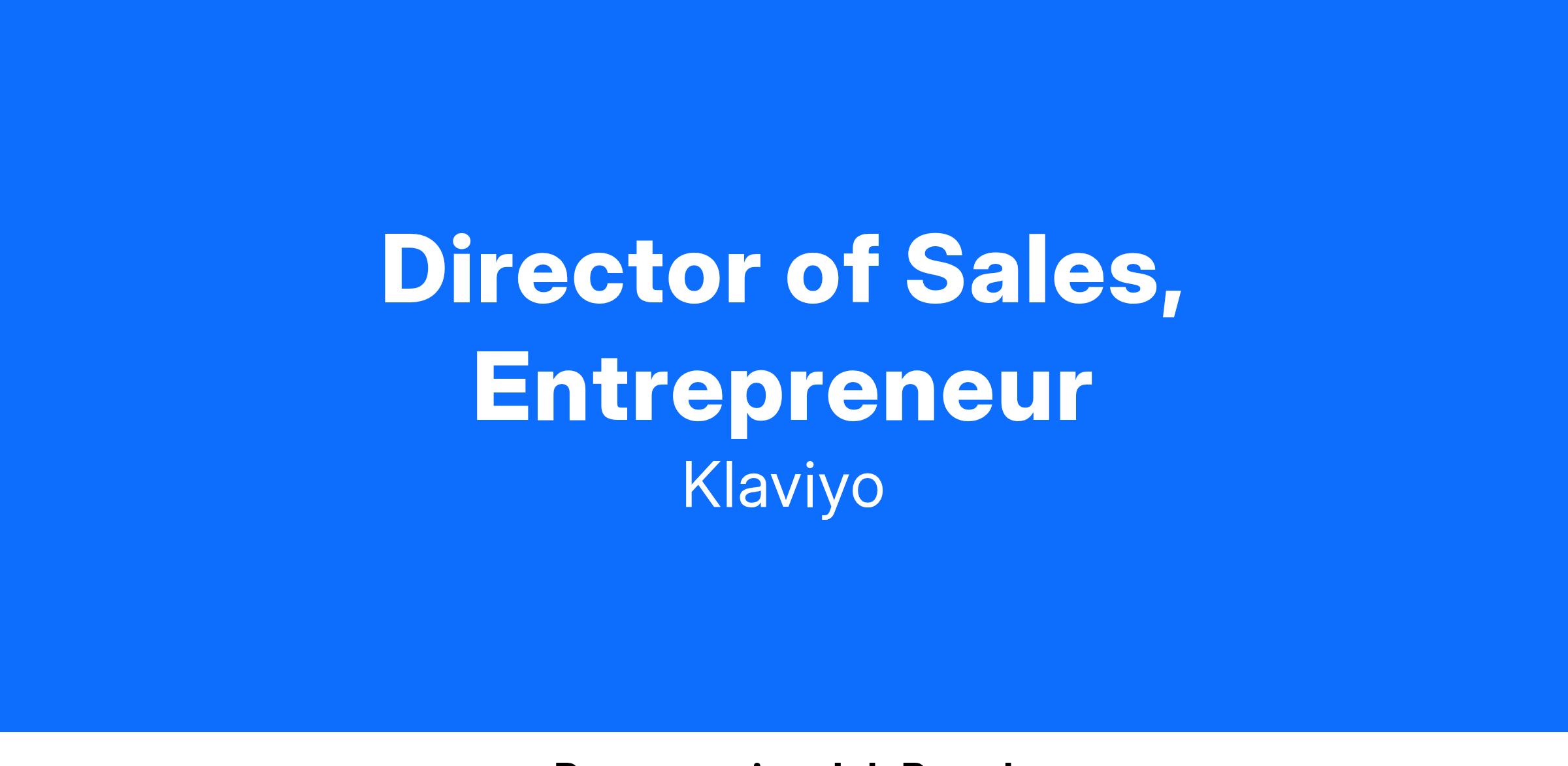 Director, Sales (Entrepreneur Segment) @ Klaviyo!