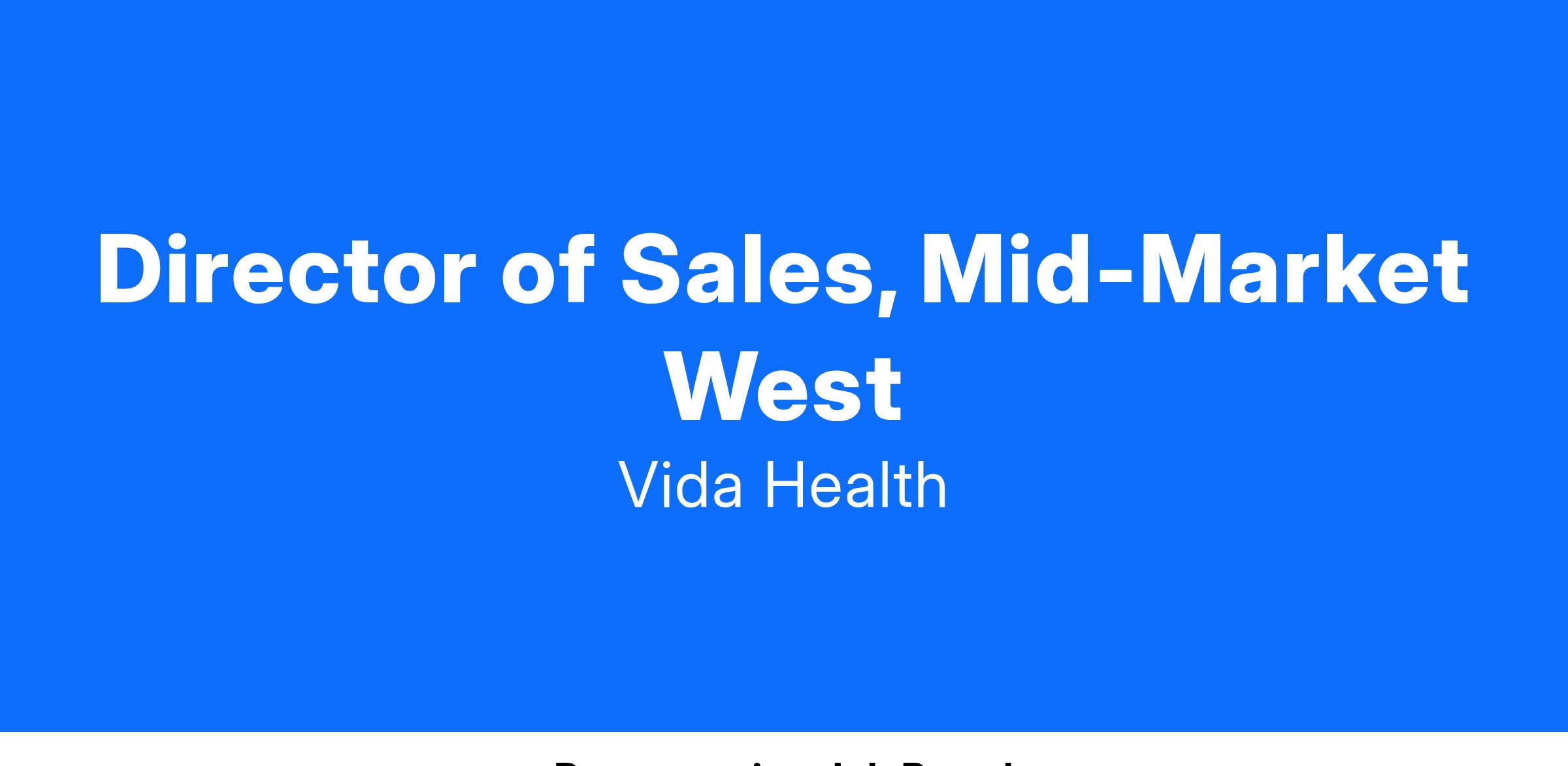 **Vida is authorized to do business in many, but not all, states. If you are not located in or able to work from a state where Vida is registered, you will not be eligible for employment. Please speak with your recruiter to learn more about where Vida is registered.