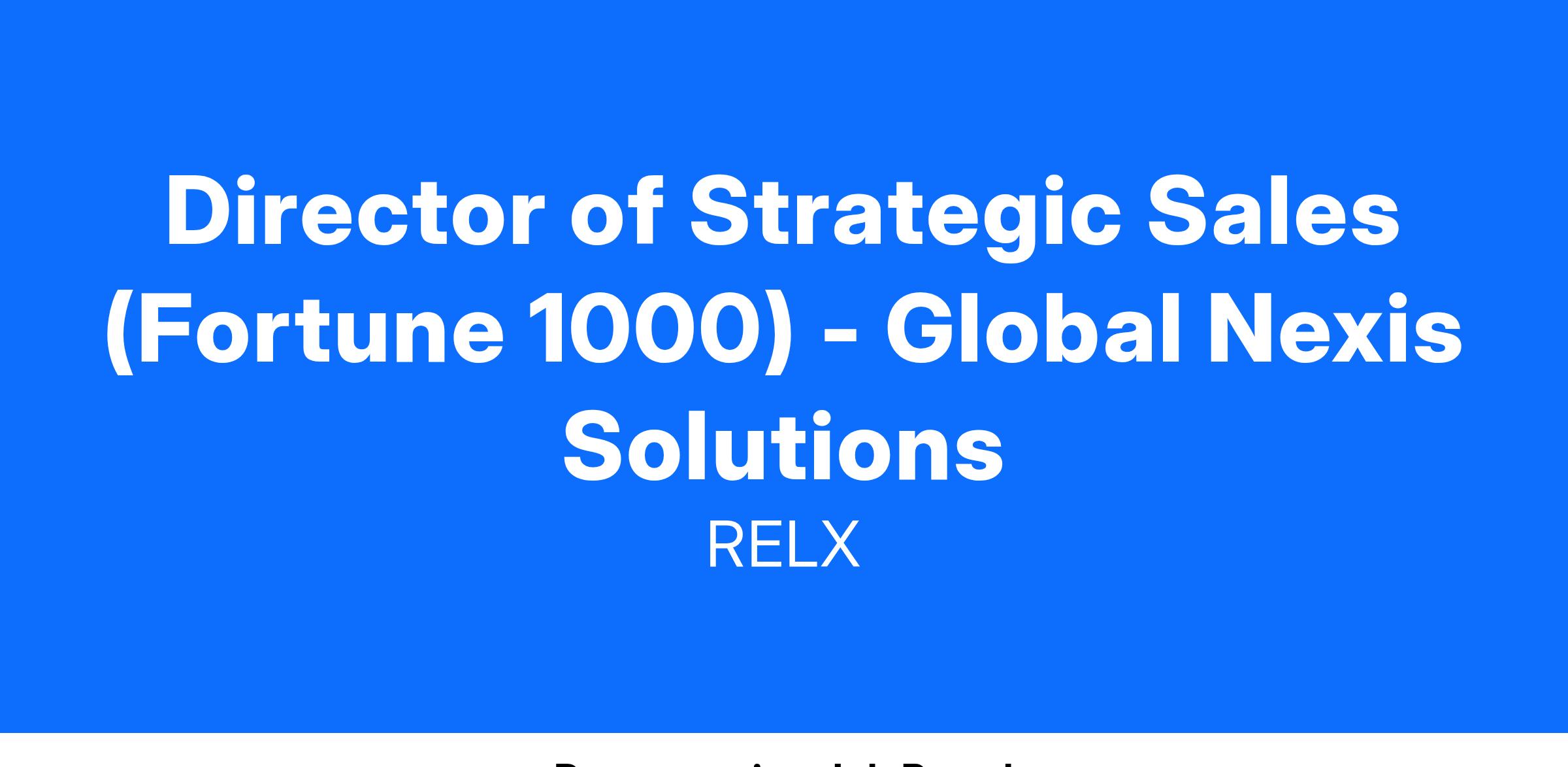 As the Director of Strategic Sales, you will play an important role in expanding our presence in new large enterprises. You will work closely with internal business partners to drive new Global Nexis Solutions sales.
