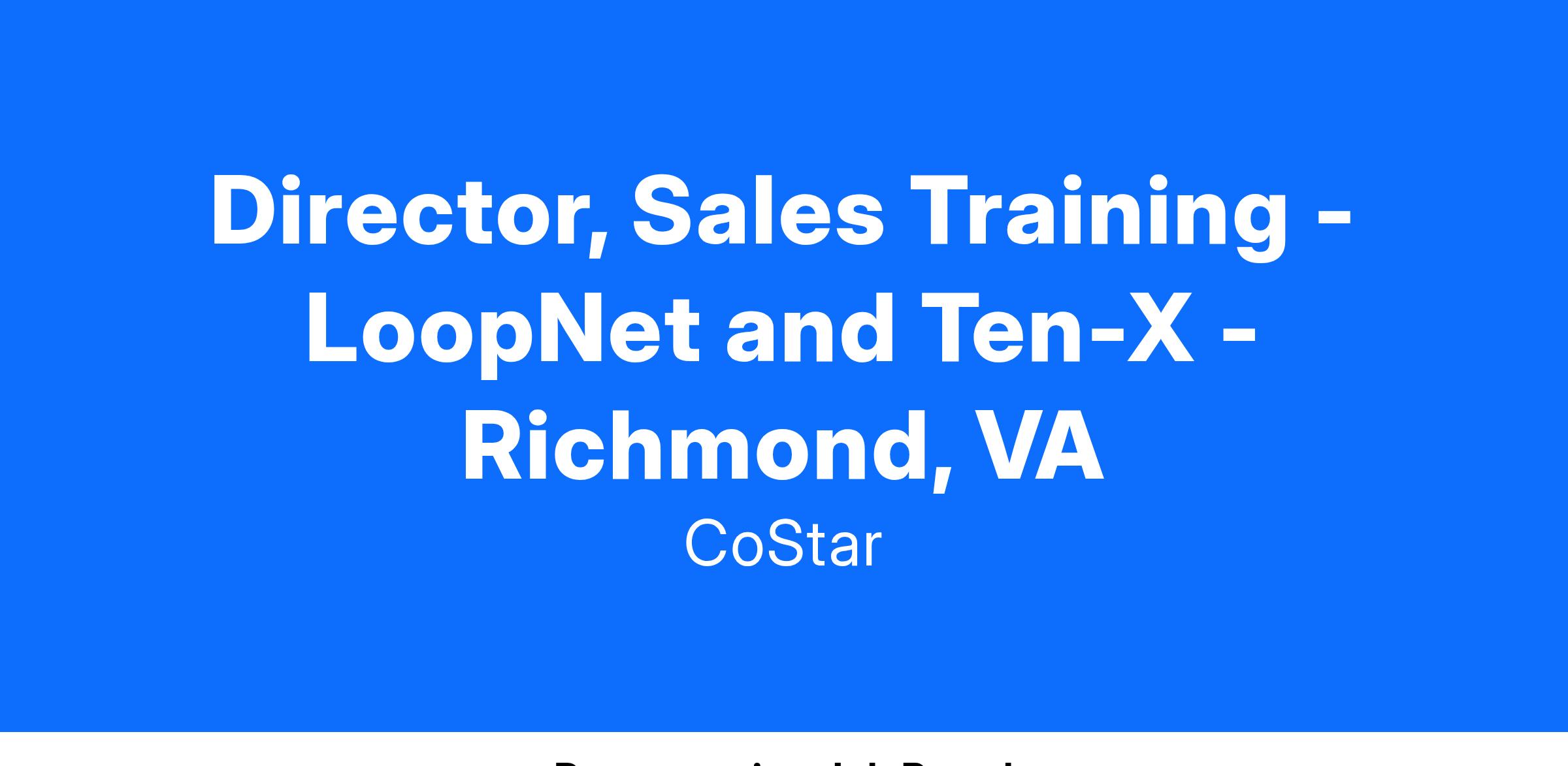 Director, Sales Training - LoopNet and Ten-X - Richmond, VA