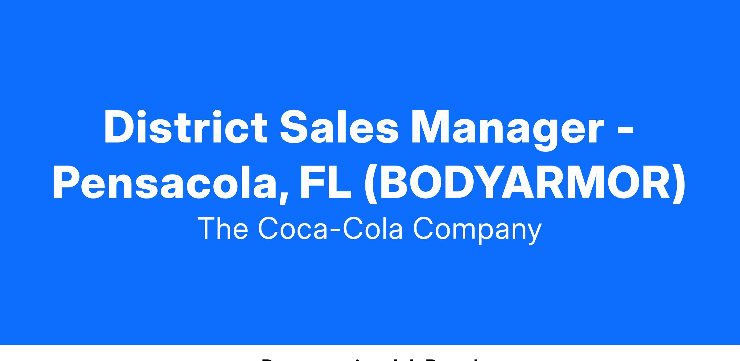 BODYARMOR is looking for a District Sales Manager to join our team in the Pensacola, FL area.